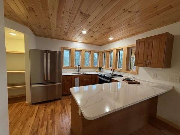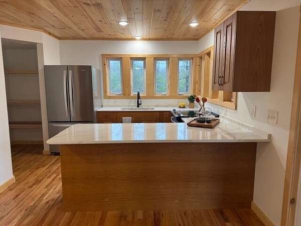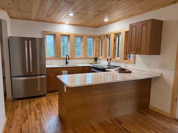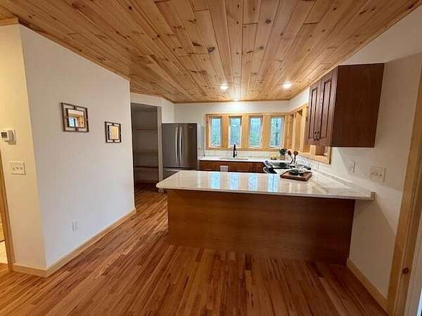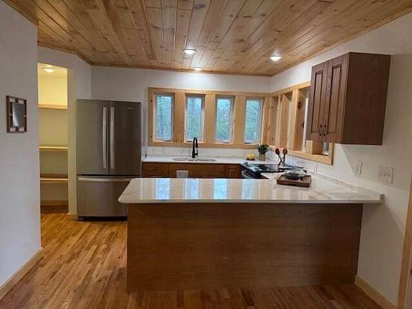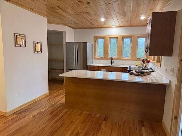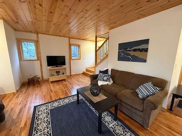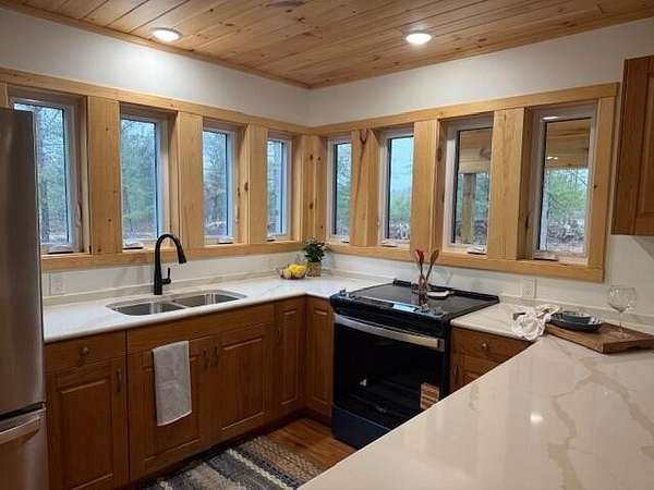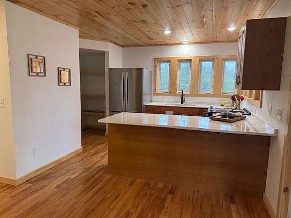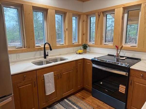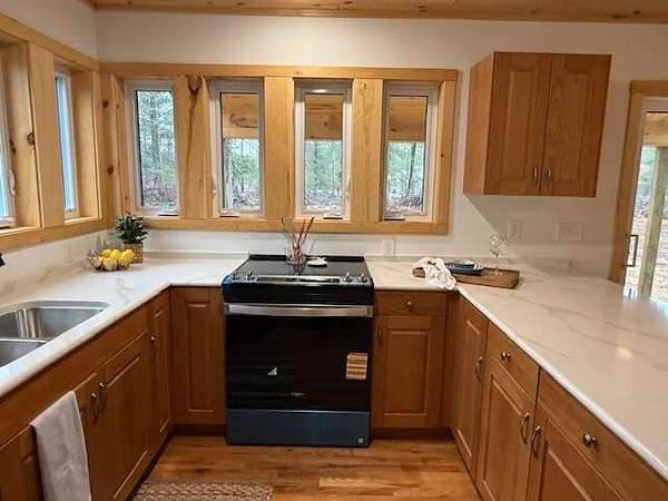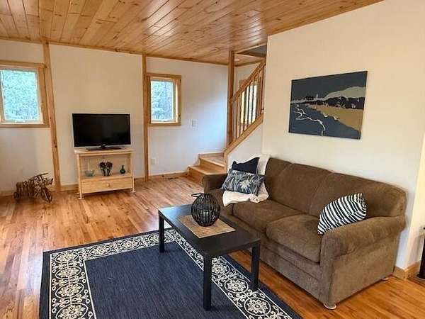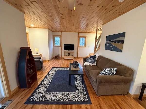 Land Contract Terms Are Available! New Construction Alert! This beautifully crafted home is completely finished, ready to move in, and no expense has been spared! This 2 BR/1.5 BA home/cabin offers Tongue and Groove ceilings in the kitchen, living room AND deck area giving it a rustic feel, paired with being tucked back in the woods and across the road from state land, this property truly is a secluded gem! Sit inside and view the wildlife from the large sliding glass door or outside on the beautifully finished deck. Many unique features were put into this home including hand-cut trim, hand-finished red oak hardwood flooring, and upgraded windows and cabinets. Contact listing agent for more information. *Home is staged. Furniture not included in the sale.*