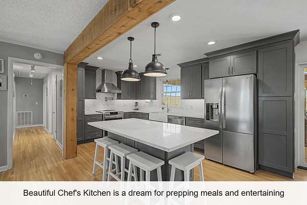 Move-in Ready Mini Farm on 2.74 acres featuring a remodeled 4 BR split-level home. Boasts a renovated Chef's Kitchen complete with quartz countertops and Cafe Induction range top with double convection oven, open floorplan for simple entertaining, luxurious tiled shower including heated tile flooring in downstairs bath, and 2 spacious family rooms. New Trane 3 Ton HVAC installed in 2022 and new water heater installed in 2020. The covered, screened-in porch provides tons of year round outdoor living space among the serene green space with so much potential for hobby farming and gardening. ***Opportunity knocks being zoned CD2 with possible CD3L, if desired to teardown and build 2-3 houses total. Would make a lovely family compound!!