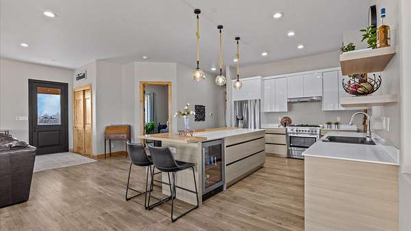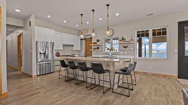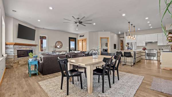 Set within a gated community in Fruita, Colorado, 2085 Kedrowski Court offers nearly 4 acres surrounded by some of Western Colorado's most striking landscapes. From the property, expansive views unfold in every direction-across the water, toward the Grand Mesa rising to the east, and across the valley to Monument views in the distance. The setting provides a rare sense of space and scenery while remaining within convenient reach of Fruita's amenities. The custom home offers 2,133 square feet of living space and a 3-car garage, with large windows designed to capture natural light and frame the surrounding views. The layout flows comfortably between the main living spaces, creating an inviting environment that connects the indoors with the landscape outside. Step outside and the acreage opens to wide skies and a peaceful atmosphere that defines Western Colorado living. Evenings often bring the sound of bullfrogs from the nearby water, and on clear nights the stars reflect across the surface, creating a setting that changes beautifully with the seasons and time of day. A unique opportunity to own a custom home on acreage in a gated Fruita community with remarkable views in every direction.