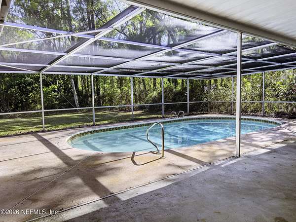 Rare opportunity: 1.8 acres in the heart of 32216! This 3Bed/2Bath single family home offers 1783 square feet of living space and a massive private backyard rarely found in this part of town. The home features newly updated bathrooms and a modern kitchen complete with new stainless-steel appliances and an island cook top! Relax about your classic masonry fireplace or enjoy the private pool featuring a newly screened lanai. This private oasis is a blank canvas ready for your personal touch, offering the serenity wooded lot and the benefit of being less than two miles from I-95 and State Road 202. Uniquely situated in the Tiger Hole Secret Woods neighborhood with no HOA fees! This prime South Side location provides quick access to Hospitals and the St. John's Town Center. Approximately 1.8 acres of exceptional space and access to Pottsburg Creek makes this property a must see!
