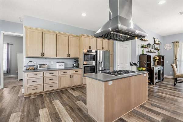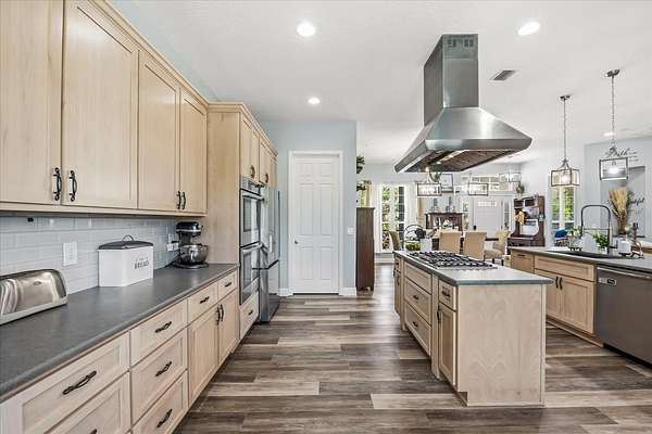 Step inside to experience comfort and a modern design throughout the 4-bedroom, 4.5-bathroom main home boasting 3,631 sq. ft. of thoughtfully designed living space. The open floor plan centers around the upgraded kitchen, the heart of the home, featuring stone countertops, stainless steel appliances, extended wood cabinetry, double ovens, a gas cooktop island, and a farmhouse sink with breakfast bar -- a culinary dream come true.