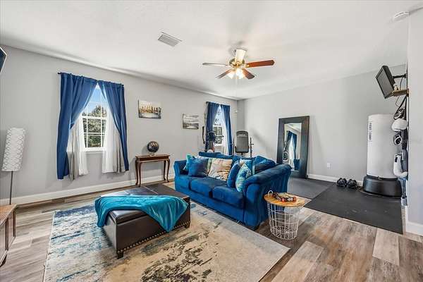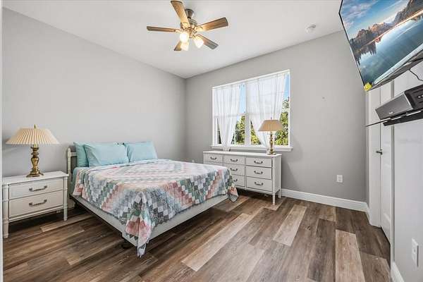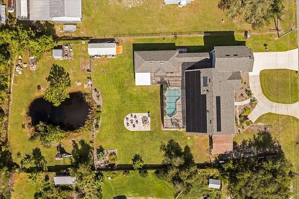 Enjoy peace of mind with solid paired concrete walls, hurricane protection, a 2022 architectural shingle roof, and a solar package. The 3-car tandem garage provides ample space for vehicles, storage, or hobbies -- and there's additional room for your recreational toys on the property.