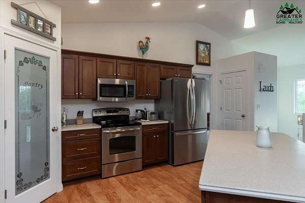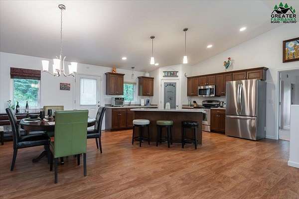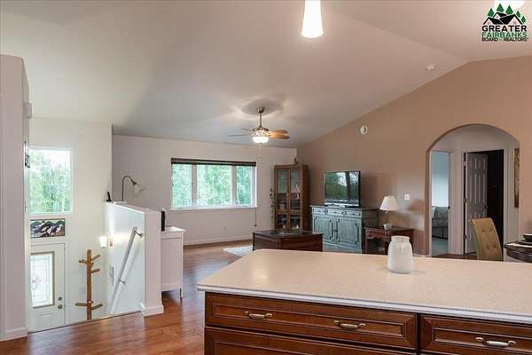 Experience the perfect blend of comfort, style, and efficiency in this spacious 4-bedroom, 2.5-bath home with 2,424 sq ft of living space. Built in 2012 and boasting a 5-Star+ energy rating, this home features radiant floor heating, durable laminate flooring, and an open-concept layout ideal for both everyday living and entertaining. Enjoy privacy and peaceful hillside living on nearly 2 acres in the sought-after Chena Point neighborhood--just minutes from schools, shopping, and local amenities. The oversized 2-car garage offers ample storage and convenience, while the thoughtfully designed floor plan provides generous living areas and natural light throughout. This rare hillside gem offers both serene surroundings and functional design. Don't miss your chance to own a well-built, energy-efficient home in one of Fairbanks' most desirable neighborhoods. Schedule your private showing today!