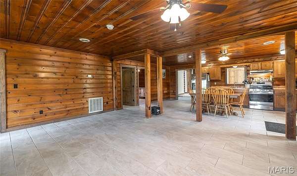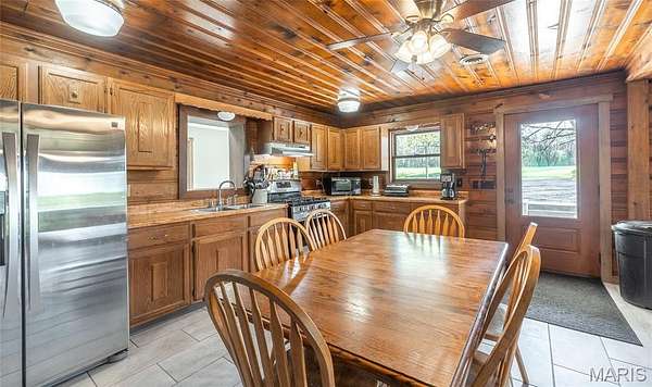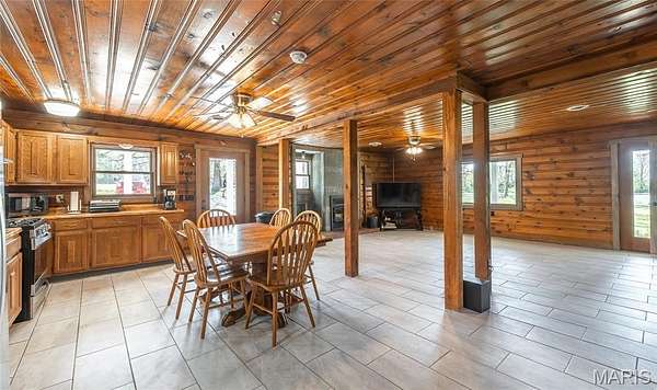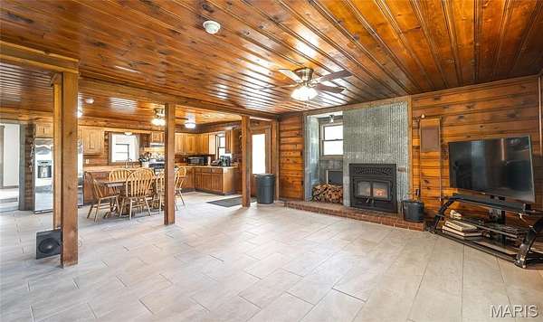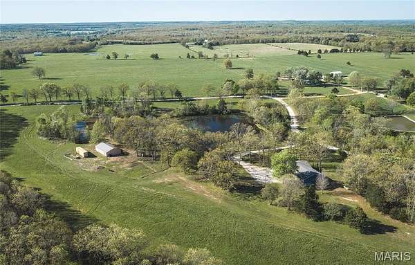 25.64 acres, 2,300+sq/ft home, 2 stocked ponds and a large, 4-bay shop... This property has it all! Experience the perfect blend of comfort, privacy, and country charm with this all one-level, 3-bedroom, 2-bath home nestled on 25.64 picturesque acres. Whether you're looking for a peaceful retreat, a hobby farm, or space to spread out, this property delivers. Two ponds, approximately 1.6 acres and 0.3 acres, are stocked with bass, crappie, catfish, and bluegill. A pavilion is perfectly positioned to overlook the water, making it an ideal spot for fishing, relaxing, entertaining, BBQ's or enjoying quiet evenings outdoors. The land is flat with a great mix, of pasture and timber. Making it ideal for gardening, livestock and hunting. Inside, the home offers a spacious and versatile layout featuring both a living room and a separate family room, giving you plenty of space for gatherings or everyday living. The family room is anchored by a cozy wood-burning fireplace, while portions of the home feature rich wood walls and ceilings that create a warm, inviting, cabin-like feel. The kitchen is both functional and welcoming, complete with a gas stove and easy flow into the main living areas. The oversized primary suite offers a private retreat with dual sinks and a walk-in shower. While tile flooring runs throughout the main living spaces, comfortable carpeting adds warmth to the bedrooms. Step outside to the covered porch and concrete patios, perfect for enjoying morning coffee, watching wildlife, or taking in the views of your land. A large, 4-bay shop provides ample space for storage, equipment, or workshop needs, making this property as practical as it is beautiful. With the wood burning fireplace, gas stove, and double throw disconnect for future generator hookup, this home is set up to be comfortable during power outages or moments needing to be off-grid. This property's diverse land, ponds, and a home full of character, this is a rare opportunity to enjoy true country living with room to grow, explore, and make it your own.