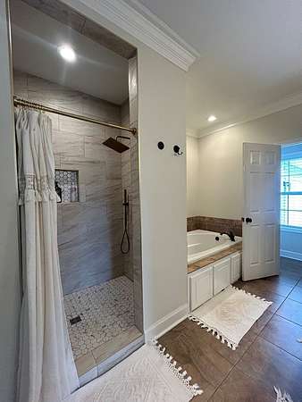 Located in Headland, this home is newly renovated and in a great location. Home comes with 4bd/3ba and sits on 2.14 acres. You'll love the split floor plan. Comes with a spacious primary bedroom w/ new vinyl plank flooring and double closets, bath includes a new tile shower, soaking tub and double vanity. On the other end of the home you have 3 bedrooms with one Jack & Jill bath and a single bath just off bedroom #3. The kitchen comes with quartz counter tops, wall in pantry and stainless steel appliances. Livingroom has a beautiful brick gas fireplace with built-ins on both sides. Outside you'' enjoy the covered patio overlooking the large back yard. Comes with a wrought iron fence and a 3 car attached garage. Property goes back to the cedar trees.