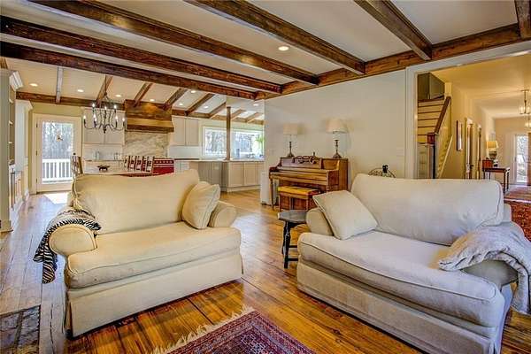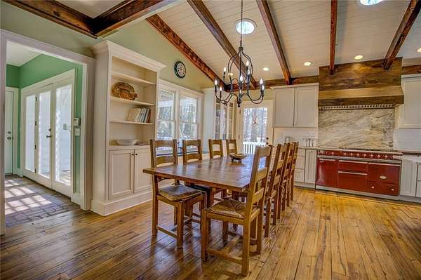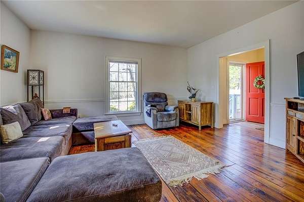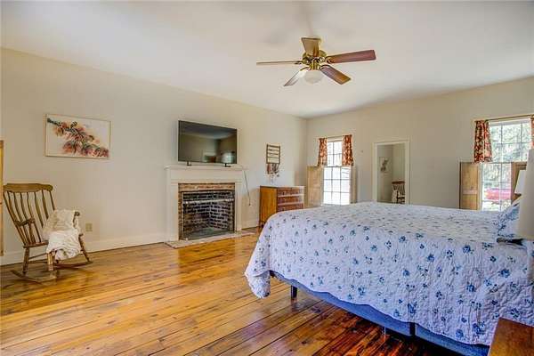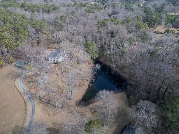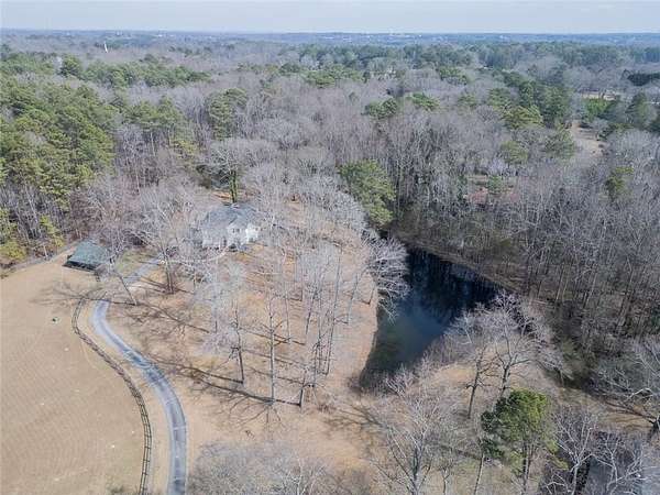 2 houses on over 5 acres with pond! Perfect family compound! Small Brick Ranch on front of property is perfect for In-Law or 2 separate apartments. 2BR/1.5BA on main floor w/ Eat in kitchen & LR; 1BR/1BA in finished basement w/ full kitchen & Huge LR/DR combo. Stunning 6 bedrm home has beautiful reclaimed hardwood floors thru out from Boxcars!! Dream kitchen w/imported gas range & grill open to family room w/brick fireplace. Huge Owners suite on main boasts separate sitting room/office, fireplace, claw foot soaking tub & Rain shower. 4 large BR & 2BA on 2nd floor and Man Cave/game room in Basement with workshop & boat door; Deck spans length of house w/hot tub and view of grounds. Barn includes predator proof henhouse and hay storage; Paddock is fenced w water. Private Oasis All Located just minutes to Award winning schools, shopping, Eateries and I-20.