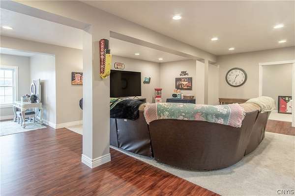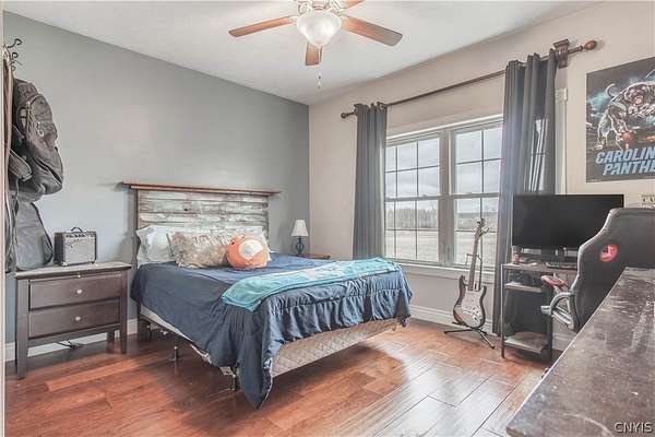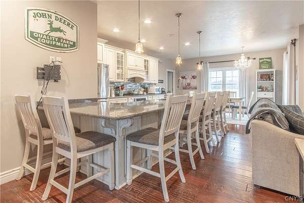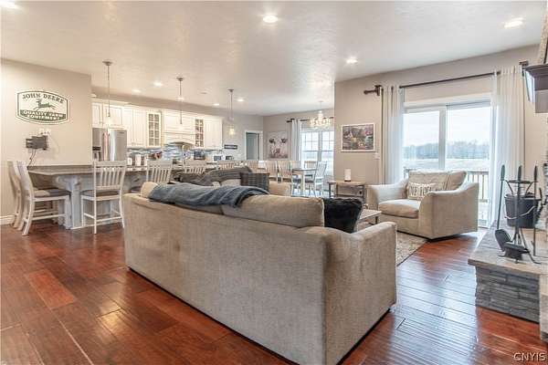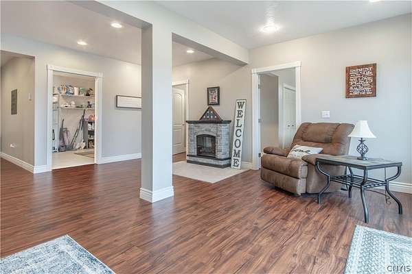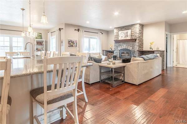 Simply stunning ranch home built in 2014. Every feature of this home has been strategically placed for the comfort and enjoyment of living. Open concept with A gorgeous kitchen. The cabinets were custom built by Black River Furniture Company, along with all of the bathroom cabinets. They all have soft closing features. New faucets. The countertops are beautiful quartz with a complementing backsplash. There is additional space in the walk-in pantry for added storage. The floors throughout are engineered hardwood within floor heating. The focal point of this home is the breath-taking wood burning fireplace with individual hand laid stone from floor to ceiling. The primary bedroom has a spacious bathroom with a corner tub and walk-in shower. There is also a large walk-in closet. The rest of the 1st. floor has 2 more spacious bedrooms, a full guest bath and a half bath. Downstairs, the walk-out basement is another world! This wonderful additional space features 3 bedrooms with a full bath. There is a large additional living room and a fantastic laundry room. Walk-out to the back yard and enjoy the 2.98 acres of land. So many options for this space! This dream home finishes it off with a 2-stall attached, heated garage. New boiler in 2024! Short drive to Ft. Drum and local amenities.