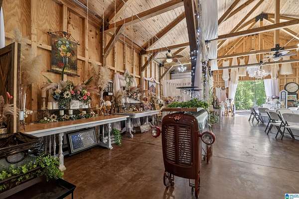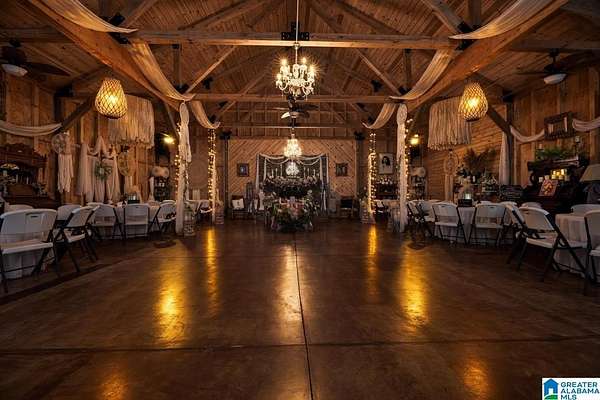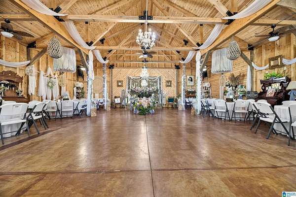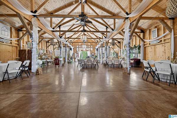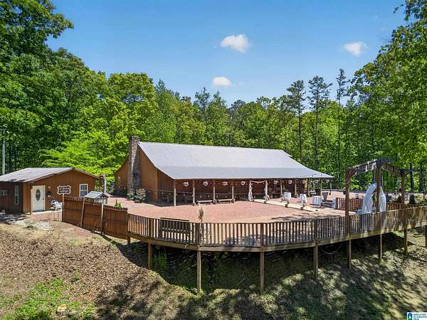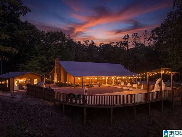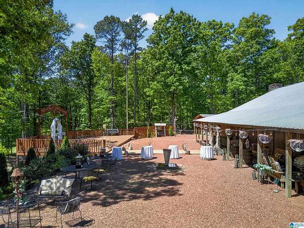 Rare opportunity to own 99.01± acres with 2 homes, multiple structures and an income-producing event venue. The 4BR/2.5BA primary home includes an office/study, wraparound porch and detached in-law suite with full bath. A separate 1BR/1BA home with open kitchen, dining and living area offers additional living or rental potential. The 3,444± sq ft venue accommodates approximately 200 guests and includes bride and groom houses, prep kitchen, multiple gardens and outdoor gathering areas. Venue furnishings and decor to remain (excluding personal items). Acreage features natural springs, mature hardwoods, open fields and abundant wildlife. This property also borders national forest on two sides. Additional improvements include 2 large shops, 3 bay garage and 2 storage buildings. Don't miss this once in a lifetime chance! Call today to schedule your private showing!