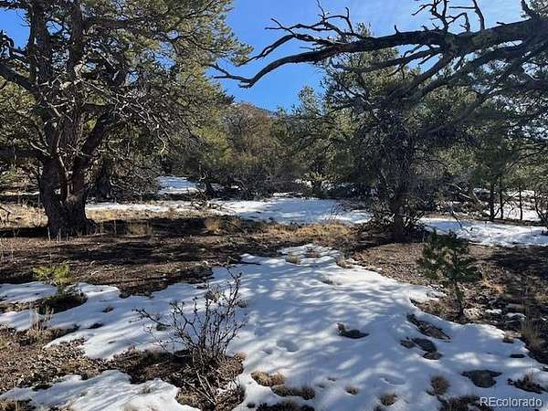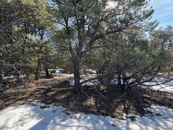 Lot is mostly level and filled with mature pinon pines and a mix of other trees.