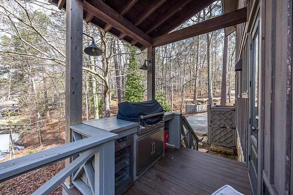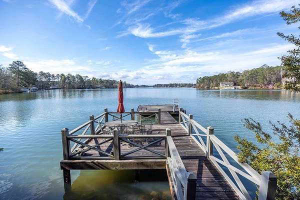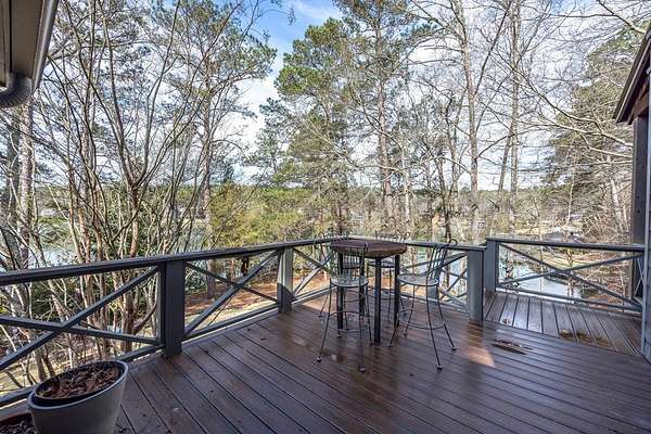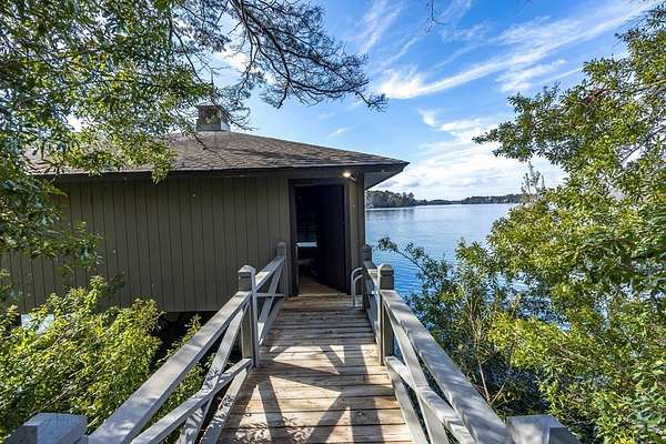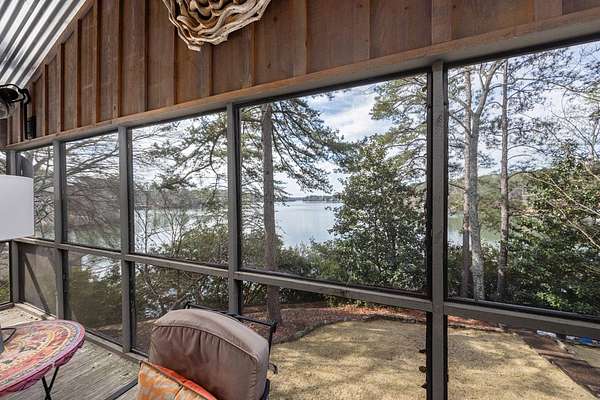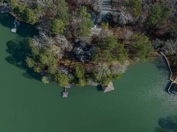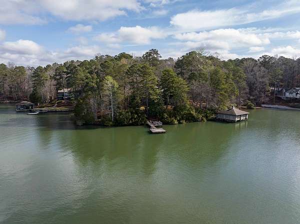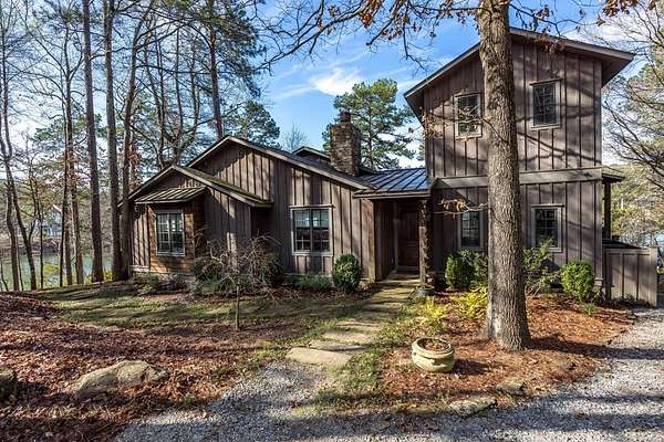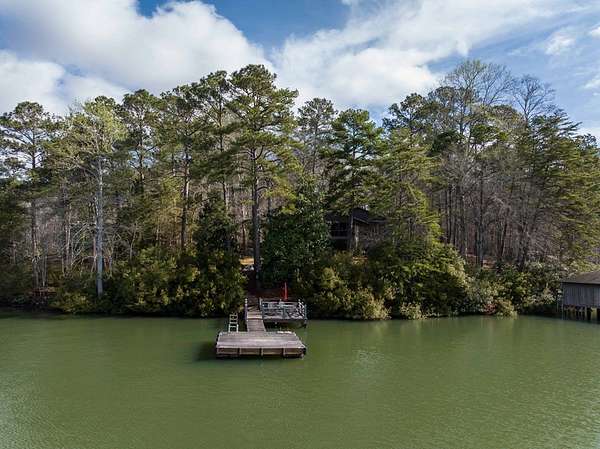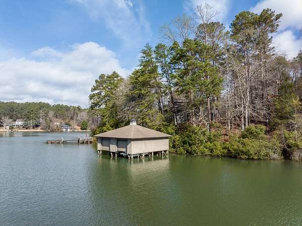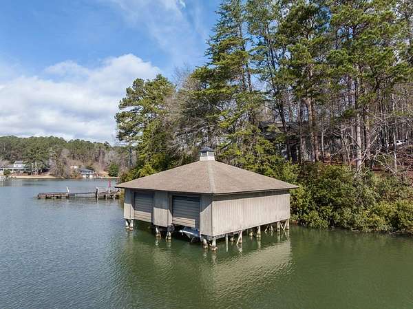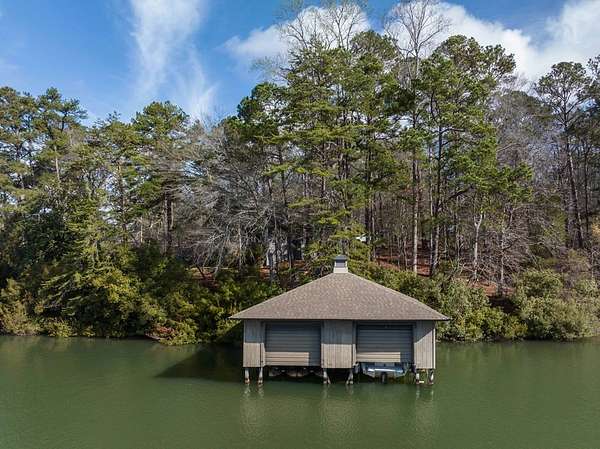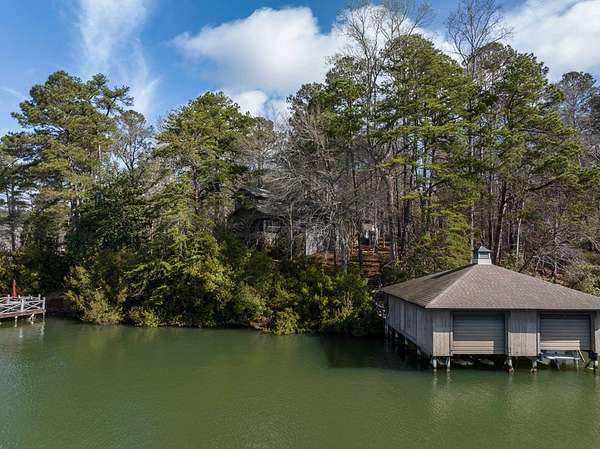 Spectacular waterfront home with big water views nestled on 1.6 acres in Boat Club Cove-one of Lake Harding's most desirable locations-featuring 374 feet of shoreline. Offering 3 bedrooms and 3.5 bathrooms, this home showcases an open-concept great room with shiplap walls throughout, a wet bar, and a stacked stone wood-burning fireplace-perfect for entertaining. The spacious kitchen and dining area are designed for gathering, featuring custom cabinetry, a large island, a Wolf gas range, Thermador double ovens, and a butler's pantry. Step outside to a large screened porch and expansive entertaining decks overlooking the water. Outdoor amenities include an enclosed double boathouse, stationary dock, and floating dock-providing everything you need to enjoy lake living at its finest.