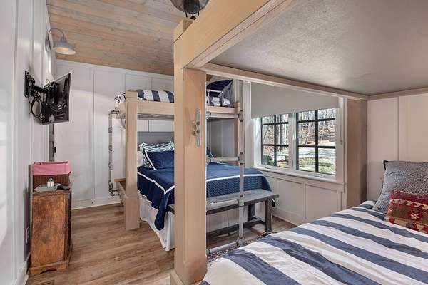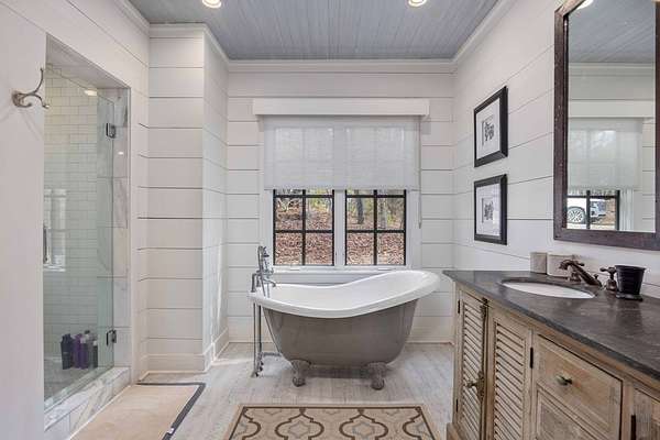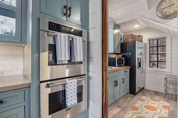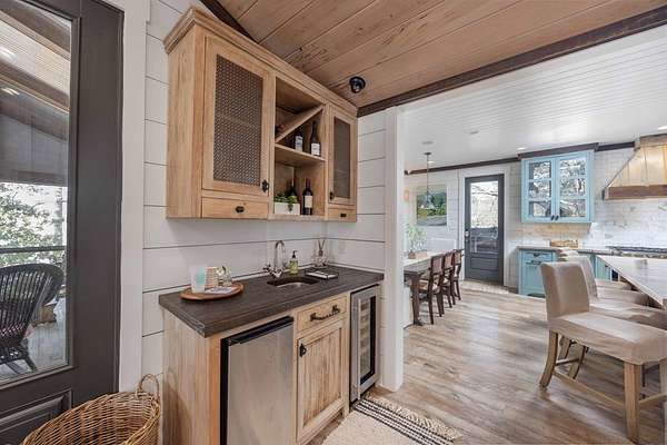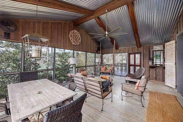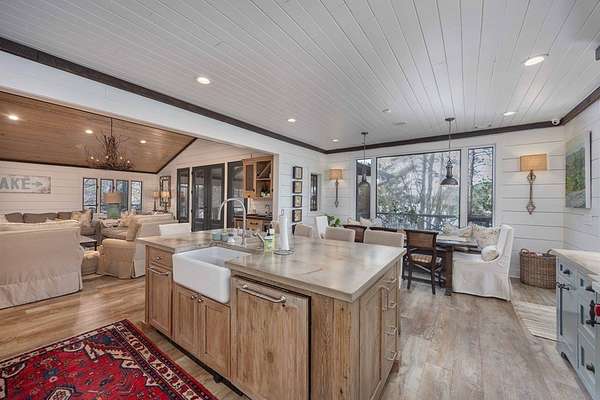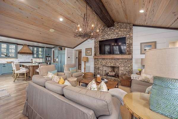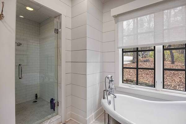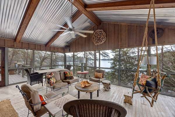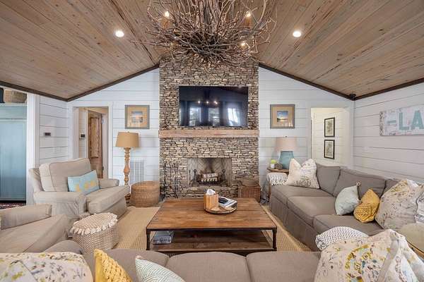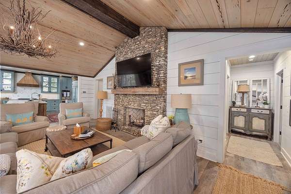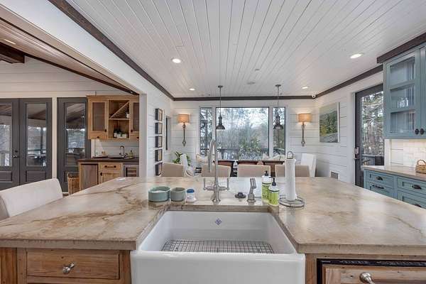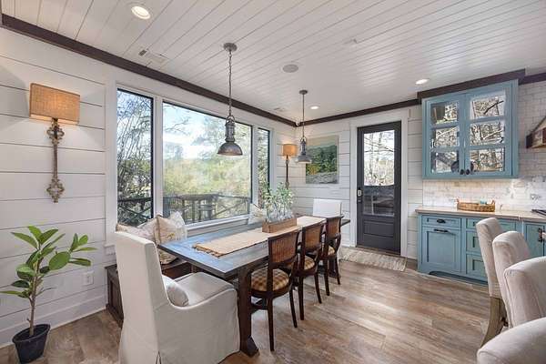 Spectacular waterfront home with big water views nestled on 1.6 acres in Boat Club Cove-one of Lake Harding's most desirable locations-featuring 374 feet of shoreline. Offering 3 bedrooms and 3.5 bathrooms, this home showcases an open-concept great room with shiplap walls throughout, a wet bar, and a stacked stone wood-burning fireplace-perfect for entertaining. The spacious kitchen and dining area are designed for gathering, featuring custom cabinetry, a large island, a Wolf gas range, Thermador double ovens, and a butler's pantry. Step outside to a large screened porch and expansive entertaining decks overlooking the water. Outdoor amenities include an enclosed double boathouse, stationary dock, and floating dock-providing everything you need to enjoy lake living at its finest.