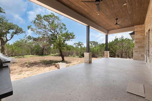 Inviting single-story home by Jon Morgan Homes on a beautiful 5-acre tract in the gated community of Burnet Oaks. This thoughtfully designed 3-bedroom + study, 3.5-bath home centers around a sun-filled living, kitchen, and dining area with soaring ceilings and seamless access to a covered patio featuring a built-in outdoor grill. The well-appointed kitchen includes a KitchenAid appliance package, striking Quartzite countertops, custom cabinetry, and under/over-cabinet LED lighting. The private primary suite offers a spa-like bath with oversized walk-in shower and a spacious walk-in closet with built-ins. A dedicated study with closet can serve as an optional 4th bedroom. Each guest bedroom includes its own en-suite bath and walk-in closet. Additional highlights: oversized 3-car garage, iron entry door, 16' entry ceilings, and Wi-Fi programmable thermostat. A rare blend of luxury, function, and acreage living.