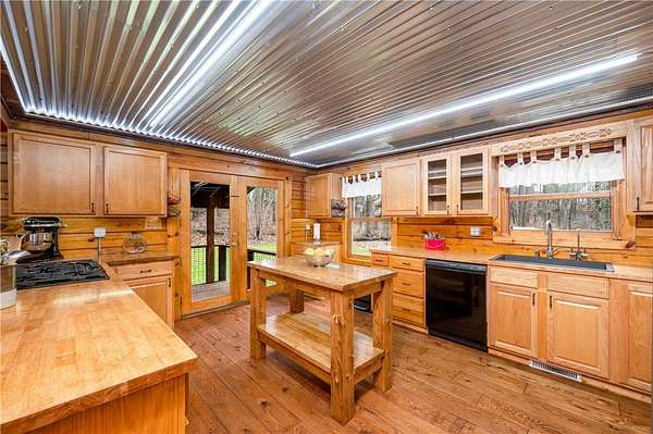 Escape to your own private sanctuary with this secluded log home on 10 partially wooded acres—a true homesteader’s dream. This 4-bedroom, 3-bath retreat offers the perfect balance of comfort and self-sufficiency, featuring a finished basement with a full second kitchen and heated floors in the shower—ideal for hosting family or guests.
