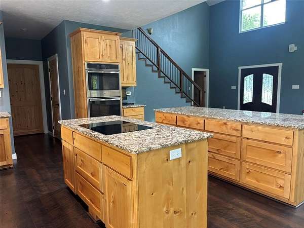 Inside, the home features a spacious open layout ideal for both everyday living and entertaining. The gourmet kitchen is a chef's delight, boasting two oversized islands, a double oven, and abundant cabinetry and storage. The oversized utility room adds convenience with extra storage and workspace.
