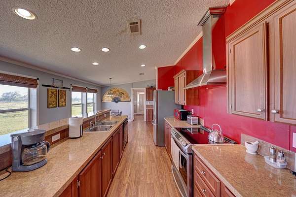 Escape the city and embrace the country life. This 3-bedroom, 2-bathroom 2011 Palm Harbor home with 1,680 square feet on 10 fully fenced acres in Harper, Texas is the homestead you've been dreaming of. With wide open skies, towering oak trees, and room to roam, this property offers the perfect blend of peace, privacy, and practicality. Tucked away on a peaceful road, it's centrally located to Fredericksburg, Kerrville, and Junction-an ideal location for convenience and quiet. The split bedroom floor-plan and spacious utility/laundry room add to the home's functionality. Step inside and enjoy thoughtful upgrades throughout, plus all appliances included-so you can move straight into your new country lifestyle. Cozy up by the wood-burning stove, or take your projects to the 20x32 shop, built on a solid concrete pad and ready for work or play. A 2,200-gallon water storage tank adds peace of mind, and the 30x30 high-fenced garden area is ready for your crops, chickens, or creative touch. Whether you're homesteading, hobby farming, or just soaking in the serenity, this property has everything you need to live the good life.
