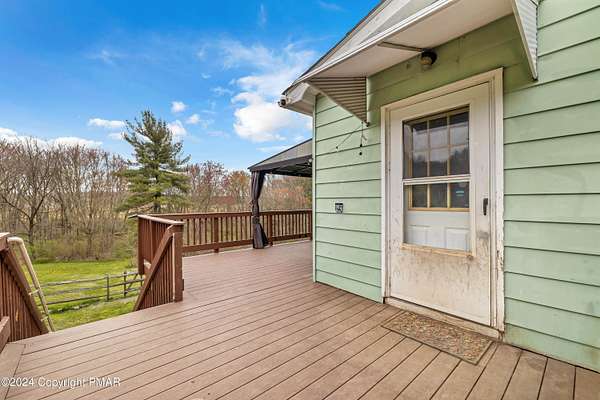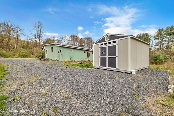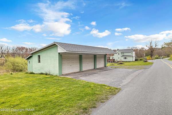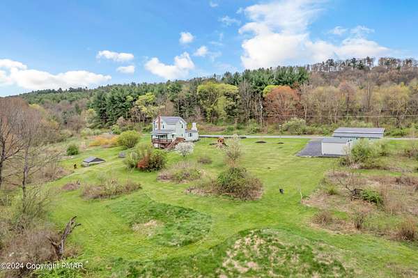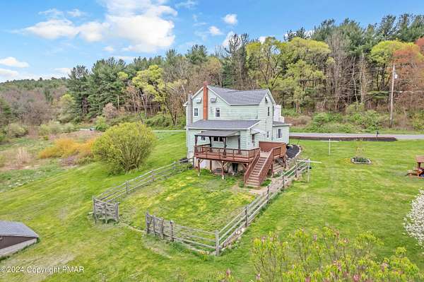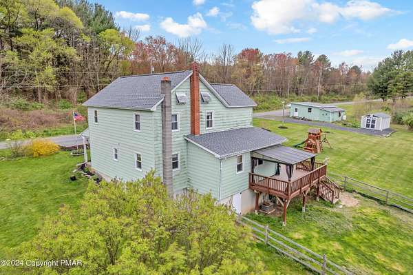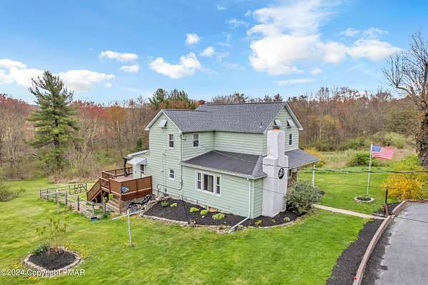 Welcome to the Pohopoco Creek, stream front farmhouse at 209 Floyd Drive in Kunkletown, Pennsylvania! Perfectly positioned on 5.80 acres, this 4 bedroom 2 bath, 4 level residence, with 3 car garage doesn't leave much to the imagination! The fishable stream is accessed from the right rear corner of the parcel, when viewing the home from the road and has native brown trout! The sitting area allows you to take it all in! Inside, the main level of this colonial period floor plan sets the tone with the family room, dining room, eat-in - remodeled - kitchen, large living room with traditional fireplace and ample sized - rear - laundry/storage room. The upper sleeping level houses all 4 bedrooms and the 2nd main bath. There is a 2 sectioned storage attic just above! Finally, the basement has the main area and unique storage nooks and crannies, with walk out access. The, almost 6 acres boarders the state road and highlights the partial - rear - fenced in yard, child swing set, oversized 3 car garage with separate 30X8 heated workshop, utility shed, water shed, and the right rear corner comes to the Pohopoco Creek. For the golf and ski lovers, you are moments to Hideaway Hills Golf Club & Blue Mountain Ski Resort! To top it all off, the heat is oil fired forced air and we have central air conditioning and 2 sources of fresh water, there is an artesian spring fed well!