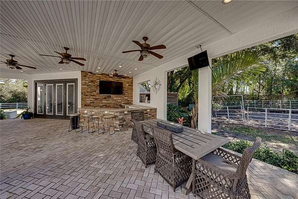 Welcome to 209 Frenchmans Creek Way, a rare find in one of Winter Havens most desirable neighborhoods. Set on over 2.6 acres in an exclusive and gated neighborhood, this exceptional estate offers the perfect blend of refined living and outdoor freedom ready for your hosting and equestrian adventures. This expansive residence features 5 generously sized bedrooms and 4 bathrooms, with over 4,000 square feet of thoughtfully designed living space. The open-concept layout is ideal for entertaining, showcasing a spacious great room with a fireplace, abundant natural light, and seamless flow into the heart of the home, the chef's kitchen. Complete with ample counter space, extensive cabinetry, and room for gatherings, the kitchen is perfectly suited for both everyday living and hosting. Step outside to your private resort-style oasis, where a sparkling pool invites year-round enjoyment. Whether relaxing poolside, hosting summer gatherings, or enjoying peaceful evenings under the stars, the outdoor space offers endless possibilities and total privacy. One of the home's standout features is the dedicated man cave, including a golf simulator. This flexible space adds incredible value and personality to the home. Equestrian and hobby enthusiasts will appreciate the on-site horse barn, complete with stalls and room to roam, an increasingly rare feature in such a desirable location. Additional detached structures include a space for guest suite, studio, or workshop, making this property ideal for multi-generational living or creative use. A 780 sq ft apartment/loft is located above the horse barn. Surrounded by mature oak trees and lush landscaping, the estate delivers a tranquil, country feel while remaining conveniently close to shopping, dining, and major roadways. This is more than a home, it's a lifestyle. Rarely does a property of this level of space, amenities, and flexibility come available in Winter Haven. Schedule your private showing today!
