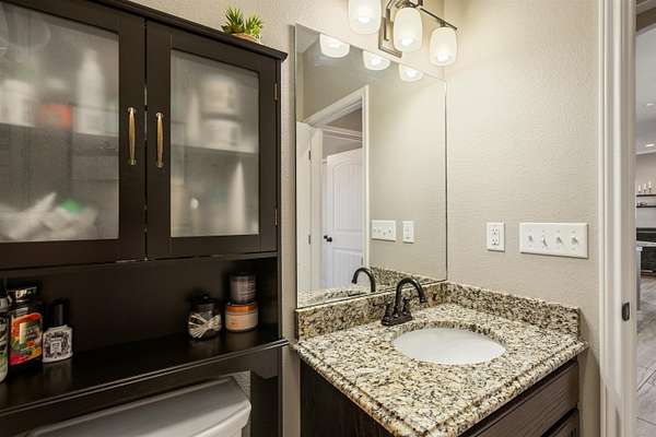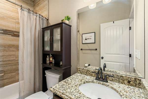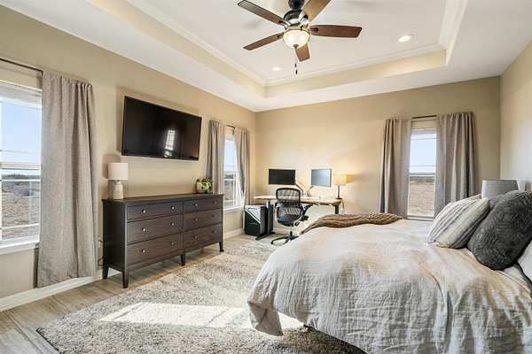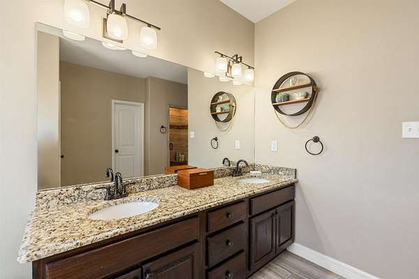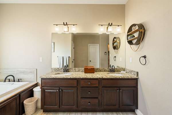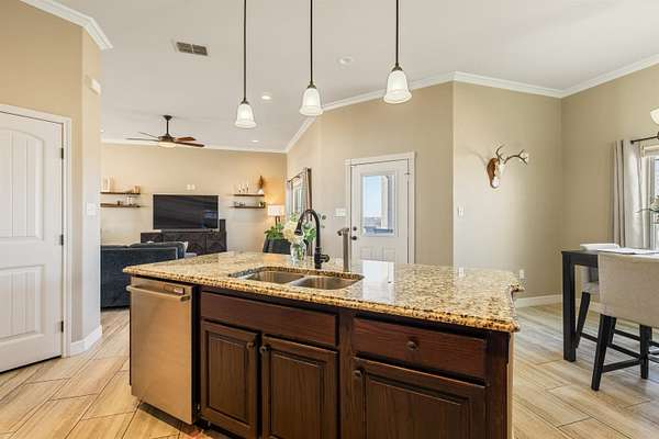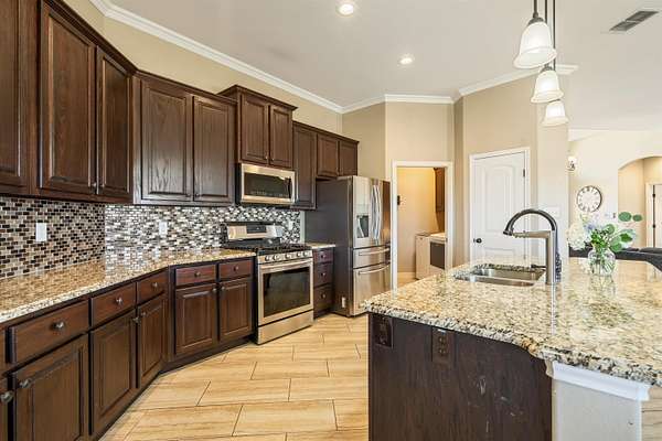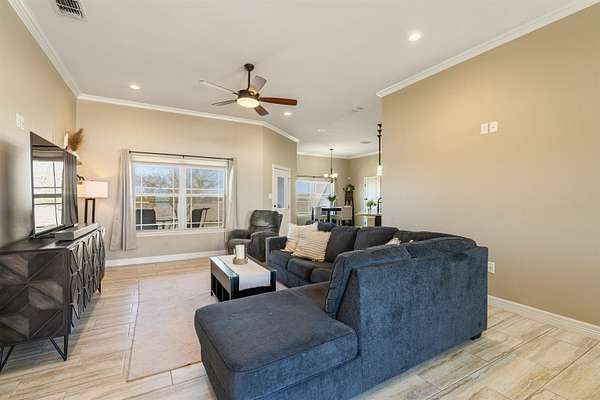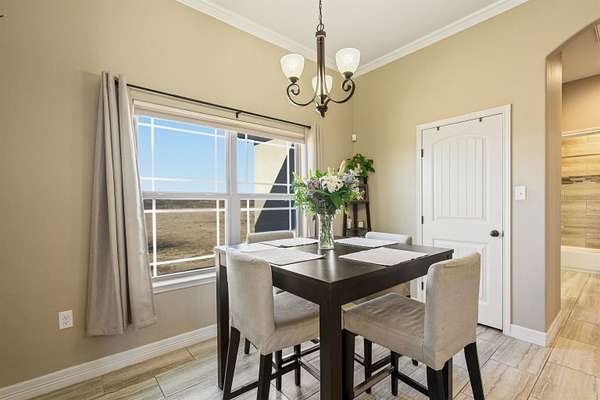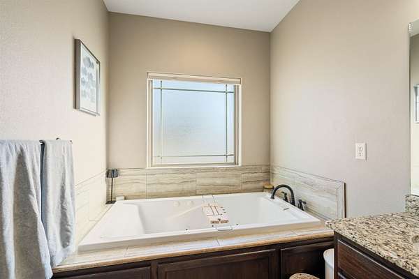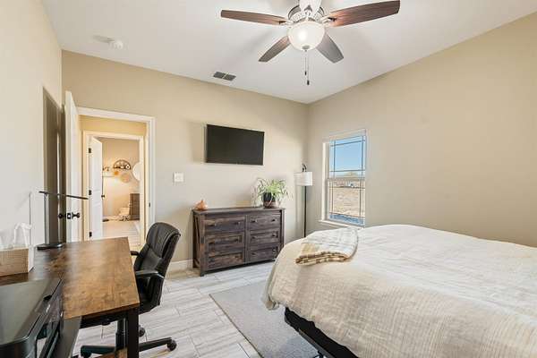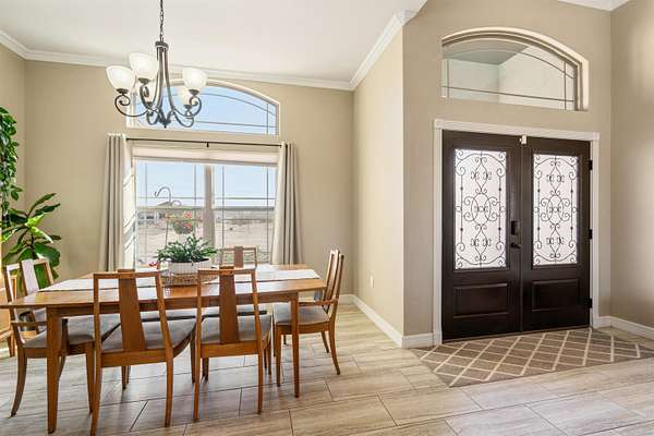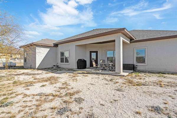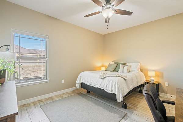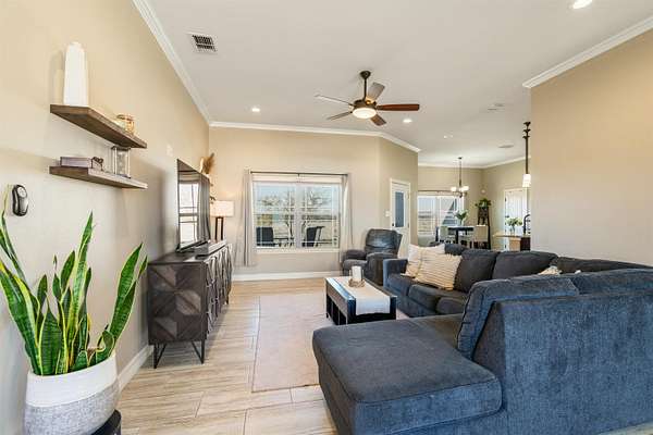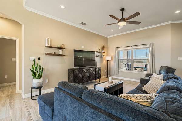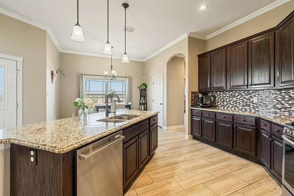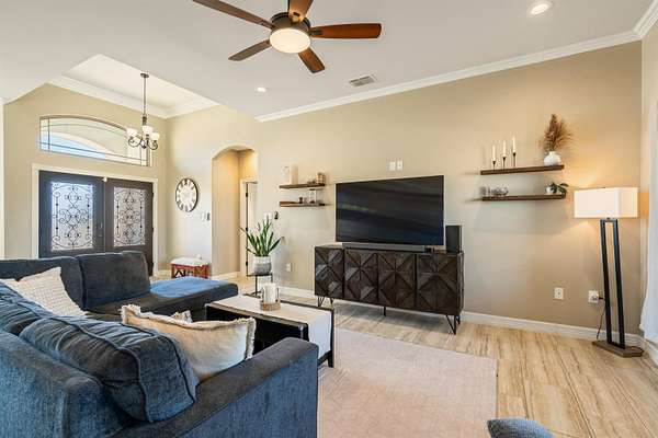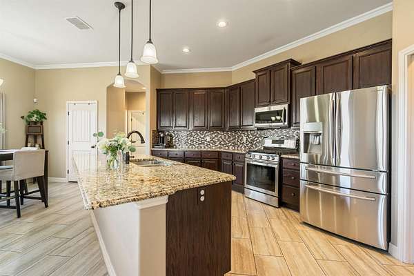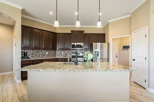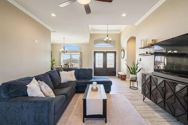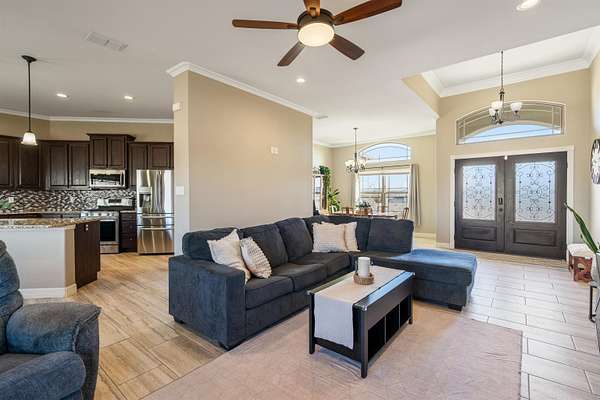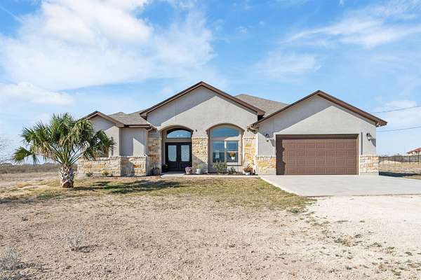 Nestled on a quiet cul-de-sac in the sought-after Lake Ridge Ranch Subdivision, this beautifully crafted home sits on 1.70 acres and offers a perfect balance of elegance and comfort. Step through a striking entry into a spacious living area where soaring ceilings and an open, flowing design create a warm and inviting atmosphere. The kitchen is a true centerpiece, showcasing custom cabinetry, rich granite countertops, stainless steel appliances, and a welcoming breakfast bar ideal for gathering and entertaining. The private primary suite provides a relaxing retreat, featuring a spa-style bath with a soaking jacuzzi tub, walk-in shower, dual granite vanity, and generous closet space. Two additional bedrooms and a full bath are thoughtfully positioned for privacy, while the oversized laundry area offers abundant storage. Designed for easy living and effortless entertaining, this property delivers space, style, and a setting that truly feels like home.