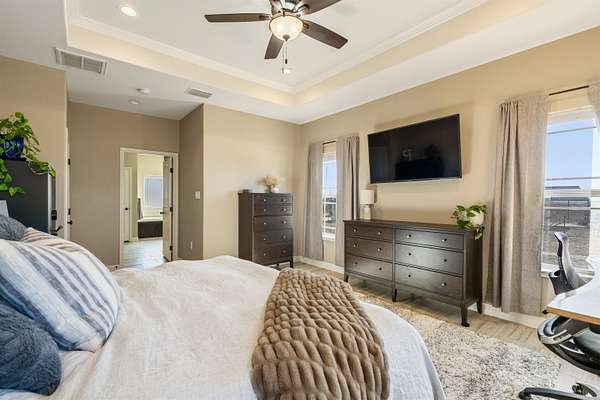 - Attic Access, Ceiling Fans, Raised Ceiling, Smoke Alarm, Water Softener, Wired For Cable, w/ Electric