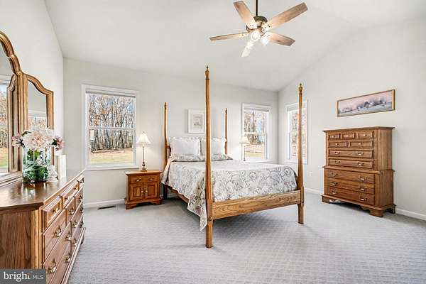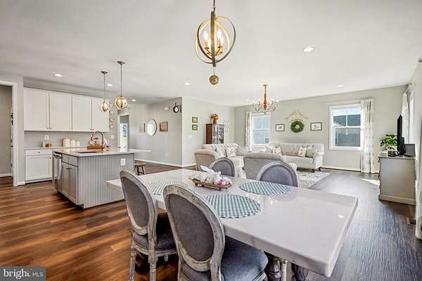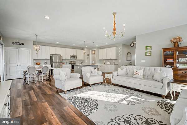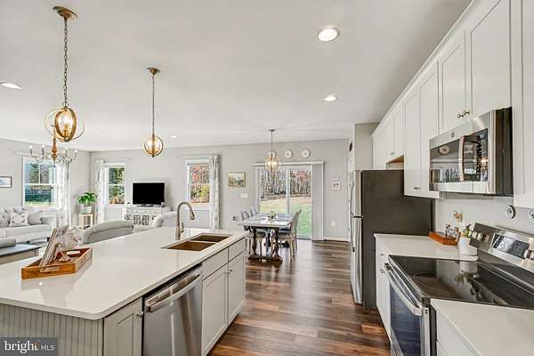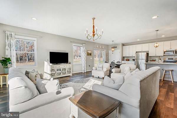 Welcome to this beautifully upgraded Chesapeake model ranch-style home, built by Atlantic Builders in 2021 and set on a private 1.5-acre lot in sought-after Liberty Hall Estates. Offering over 4,000 total square feet of living space (2,036 finished on the main level), this 3-bedroom, 3-bath home blends modern design, spacious one-level living, and premium custom upgrades throughout. Step inside to an open-concept layout featuring nine-foot ceilings, luxury vinyl plank flooring, and abundant natural light. The gourmet kitchen showcases a 79" x 51" quartz island, quartz countertops, upgraded 42" cabinetry, stainless GE appliances, and upgraded kitchen lighting, making it the perfect centerpiece for entertaining. The kitchen flows seamlessly into the extended family room, enhanced with a 4-foot rear extension and additional windows for a bright and welcoming space. The private owner's suite features a cathedral ceiling, spacious his and hers closets, and a luxurious en-suite bath with upgraded 13"*13" tile, elevated double vanity, brushed nickel fixtures, and a beautiful upgraded glass shower door. The two additional main-level bedrooms include brushed nickel light fixtures. The partially finished basement, full bathroom, double-wide basement exit, and large open lower level offer excellent potential for future finishing or recreation space. The home also includes quartz counters in all three bathrooms, upgraded lighting throughout, and extra recessed lighting in the living area. Outdoor living is just as impressive with a 2020' paved parking pad, professional landscaping (per builder package), and a quiet setting. The oversized 3-car garage features durably finished and painted drywall. This home offers the perfect combination of peaceful acreage living with modern comfort, thoughtful upgrades, and exceptional Atlantic Builders craftsmanship. Located minutes from shopping, dining, I-95, and commuter options. Don't miss your chance to own this immaculate, move-in-ready home!
