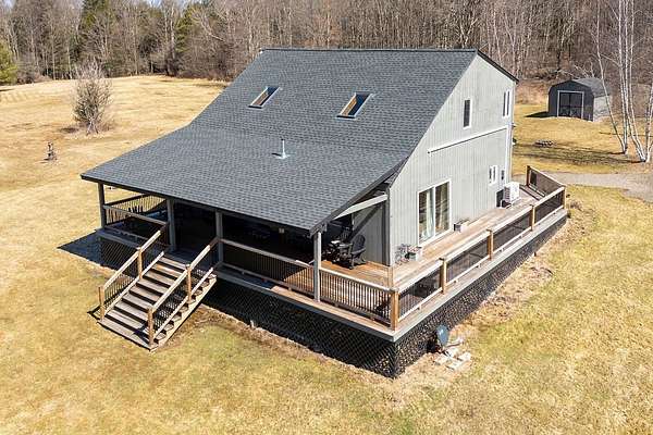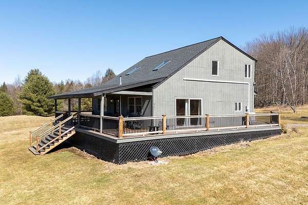 Welcome to your dream home-a stunning, modern update on a rustic retreat nestled on a tranquil country road in the beautiful Western NY Catskills. With sweeping, long-range views of the idyllic countryside, your own woods, stream, and hiking trails, this 3 bed/3 bath home offers a private oasis for you and your loved ones. Step onto the sprawling 900+ sq ft wraparound porch, and be entranced by the breathtaking sunsets and natural beauty around you. But the best is yet to come. Inside, the open-concept living area boasts vaulted ceilings, natural light and walls wrapped in warm knotty pine. Marvel at the renovated kitchen, w/beautiful appliances, quartz countertops, marble backsplash and an island w/seating. The 1st floor also features a bedroom, the 1st of three bathrooms and mudroom. As you ascend the stairs, long-range views are provided by two skylights. Upstairs there is another bedroom and bath, and the primary en suite with a 100 sq ft walk in closet/study and private bath. Minutes from the year round activities at the 5400 acres of Melondy Hill State Forest, shopping and dining in Binghamton (30 min) and Oneonta (35 min), yet 2.5 hours from the GWB.