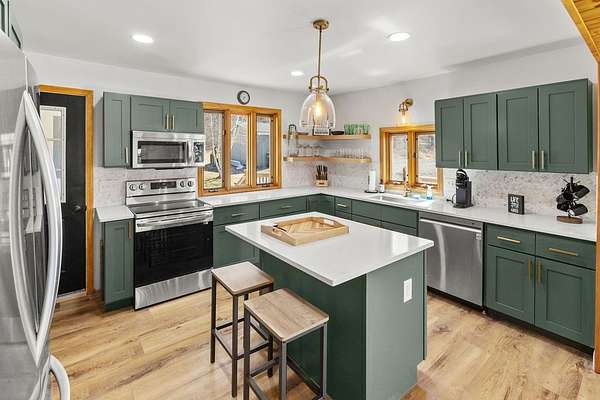 - Bedroom On Main Level, Cathedral Ceilings, Ceiling Fans, Kitchen Island, Quartz Counters, Separate Formal Dining Room, Skylights, Sliding Glass Doors
