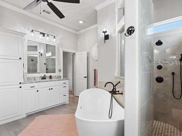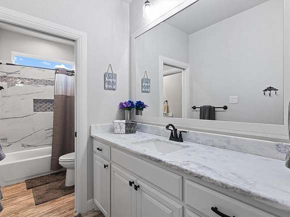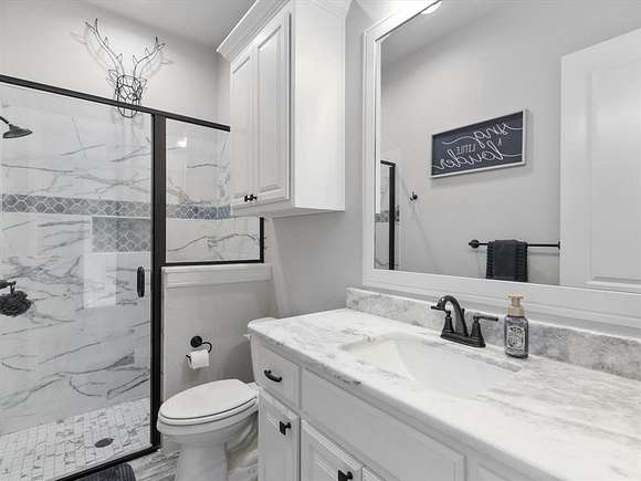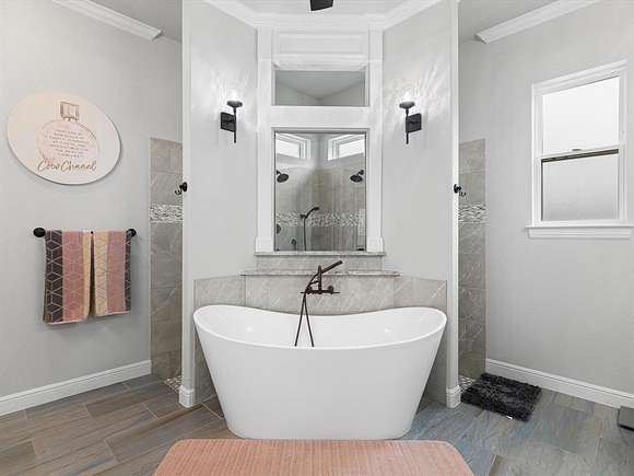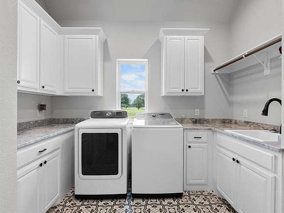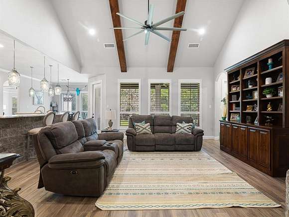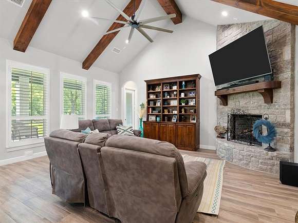 Welcome to your dream home in the highly sought-after neighborhood of Las Brisas in Decatur Texas. This stunning 4-bedroom, 4-bathroom modern residence, is situated on a picturesque 4.5-acre lot featuring a serene pond and beautiful trees. Boasting 3,069 sq. ft. of elegant living space, this home offers an open floor plan designed for contemporary living and entertaining. The heart of the home is the gourmet kitchen, equipped with a large island, gas stove, farmhouse sink, and an extra ice maker. The kitchen seamlessly flows into the large, cozy living area, highlighted by exposed wood beams and a striking stone fireplace. The primary suite is a private retreat with an en suite bathroom featuring a soaking tub, dual sinks, separate vanities, & a large shower. Additional features include a water filtration system, water softener, and a gas hot water heater. Enjoy the tranquility of country living with all the modern amenities in this gorgeous home! Call today to schedule a showing!