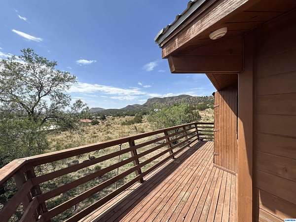 Discover this one-of-a-kind hexagonal custom Lindal Cedar home which offers an exceptional combination of craftsmanship and scenery, situated on three lots overlooking the breathtaking Mimbres River Valley and the majestic Black Range mountains. Step into over 1700+ square feet of living space on the upper level featuring an open-concept living/dining/kitchen area with a cathedral ceiling. The home is adorned with exquisite cedar finishes throughout, infusing every space with warmth and timeless natural beauty. There are two bedrooms and baths on the upper floor, and a charming spiral staircase leads to a spacious full basement below, with a workshop and utility area plus another bedroom and bathroom. Expansive wooden decks partially wrap around the upper level of the home offering the perfect space for entertaining and relaxation. This special property is in the beautiful Mimbres Valley, approximately 1/2 hour from historic Silver City, NM. Seller is motivated!