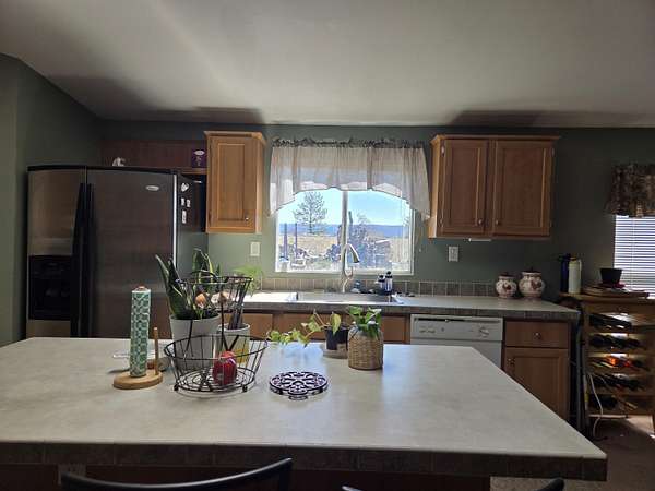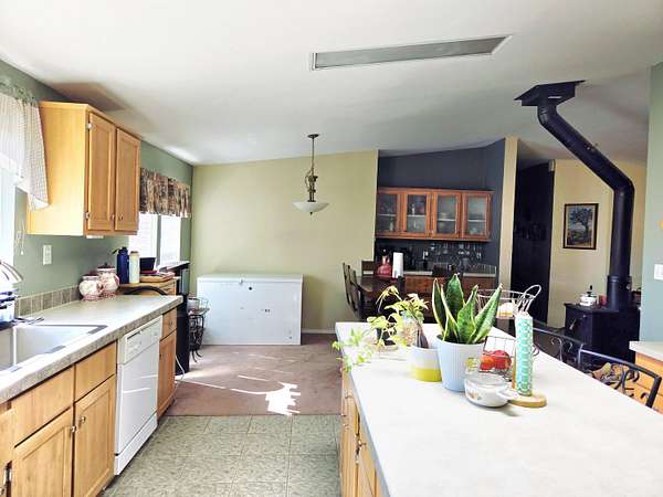This 2.5+ acres has a 4 bedroom Palm Harbor home. Master bedroom is on one end of the home and the 3 rooms are on other end. Down the hall is the Living Room with many windows and a built in fireplace. The two bedrooms are good size with built in closets allowing more usable space. Guest bath has tub and shower. Woodstove down hall next to Family Room. It is centrally located allowing for even heating. Family Room has tall windows to enjoy the views and natural light. Kitchen is large and open. Plenty of room to cook, bake, do canning and with the Breakfast Bar you can visit while in kitchen. Master Bedroom has built in closet and a full bath. Looking out on the acreage where you can do just about anything. Have Orchards, gardens, pasture for grazing livestock or just enjoy the front yard.