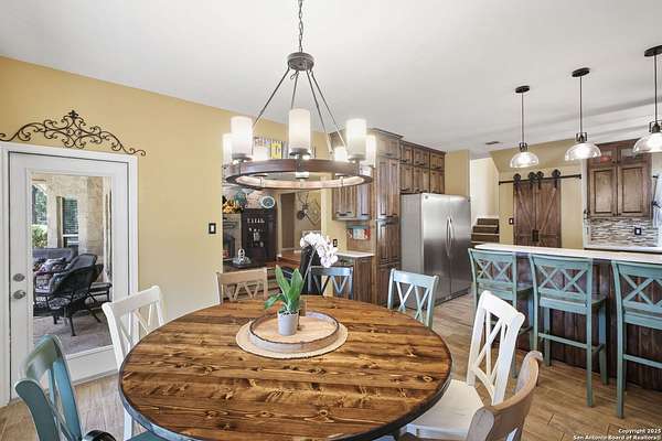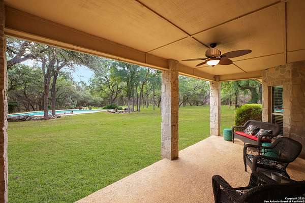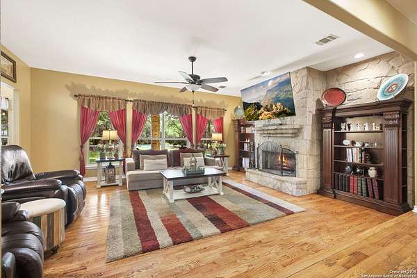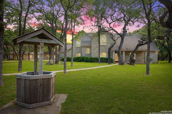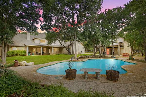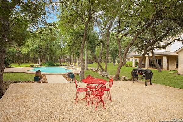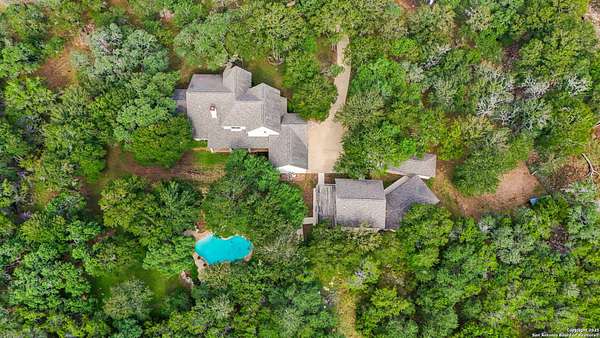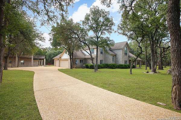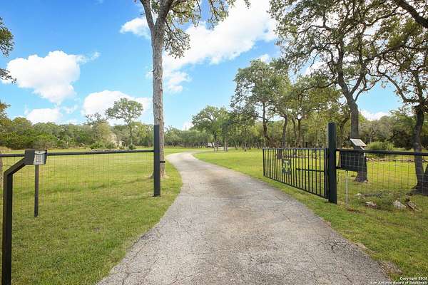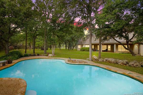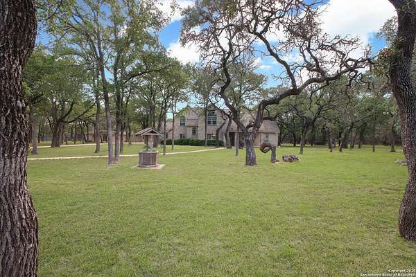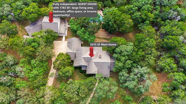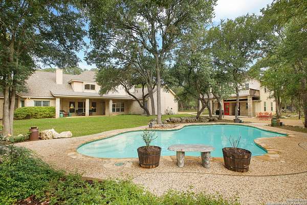 Discover Hill Country living on 5 acres with NO HOA in Boerne! Charming farmhouse-style 3415 SF Main Home paired with a private 1783 SF Guest House-ideal for multi-generational living, a detached office, or income opportunity! The main residence offers 5 spacious bedrooms, 2.5 baths including a unique Jack & Jill, and an inviting kitchen with island, custom cabinetry, and abundant storage that flows into open dining and living spaces. The primary retreat features a spa-inspired bath with double custom vanities and oversized shower. Step outside to a private backyard oasis featuring a sparkling pool, covered patio, and expansive space beneath mature shade trees-perfect for relaxing or entertaining. The guest house adds nearly 1,800 SF with its own entry, 2 living areas, 1.5 baths, and endless versatility. Property also includes an enclosed animal pen for chickens, goats, or 4H/FFA projects. Just beyond the fence, discover level acreage with a deer feeder and seasonal creek. All this within Boerne ISD and minutes from I-10, La Cantera, The Rim, and Historic Downtown Boerne.