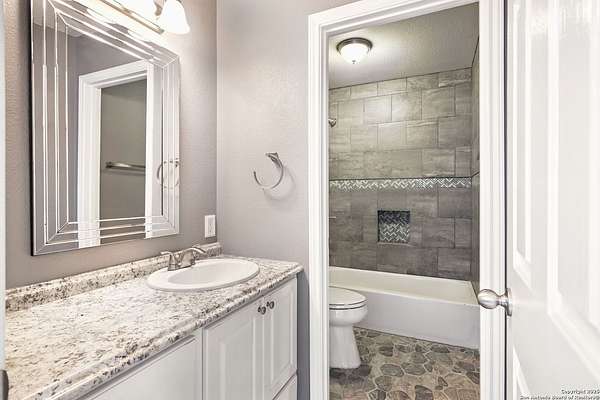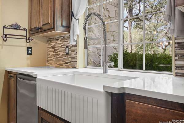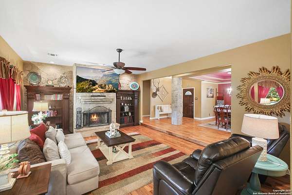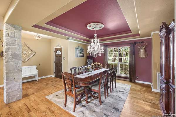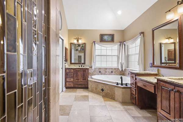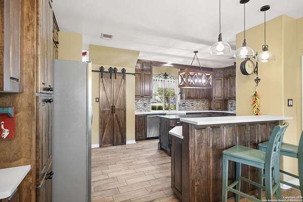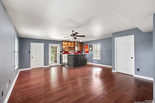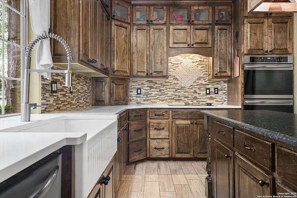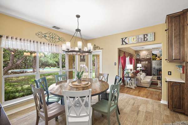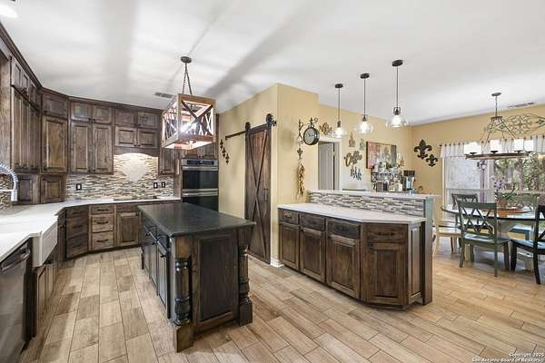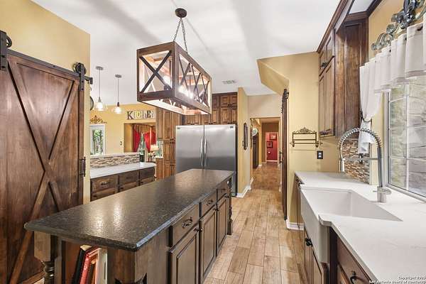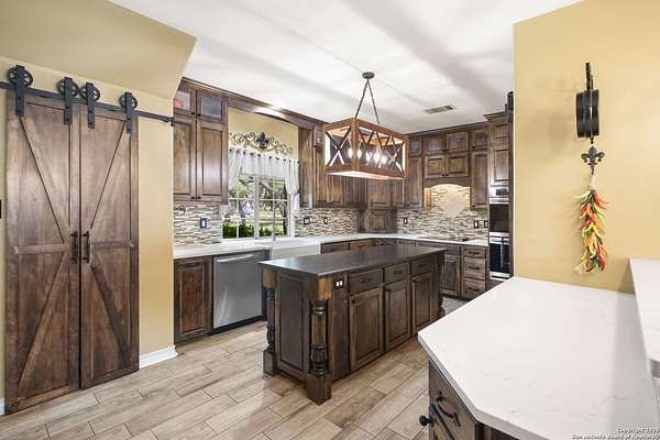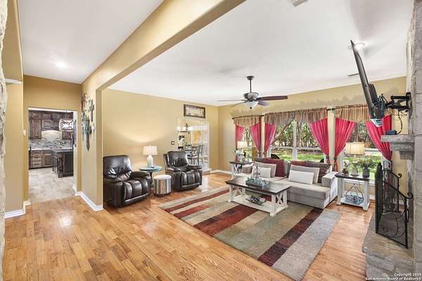 Discover Hill Country living on 5 acres with NO HOA in Boerne! Charming farmhouse-style 3415 SF Main Home paired with a private 1783 SF Guest House-ideal for multi-generational living, a detached office, or income opportunity! The main residence offers 5 spacious bedrooms, 2.5 baths including a unique Jack & Jill, and an inviting kitchen with island, custom cabinetry, and abundant storage that flows into open dining and living spaces. The primary retreat features a spa-inspired bath with double custom vanities and oversized shower. Step outside to a private backyard oasis featuring a sparkling pool, covered patio, and expansive space beneath mature shade trees-perfect for relaxing or entertaining. The guest house adds nearly 1,800 SF with its own entry, 2 living areas, 1.5 baths, and endless versatility. Property also includes an enclosed animal pen for chickens, goats, or 4H/FFA projects. Just beyond the fence, discover level acreage with a deer feeder and seasonal creek. All this within Boerne ISD and minutes from I-10, La Cantera, The Rim, and Historic Downtown Boerne.