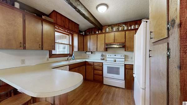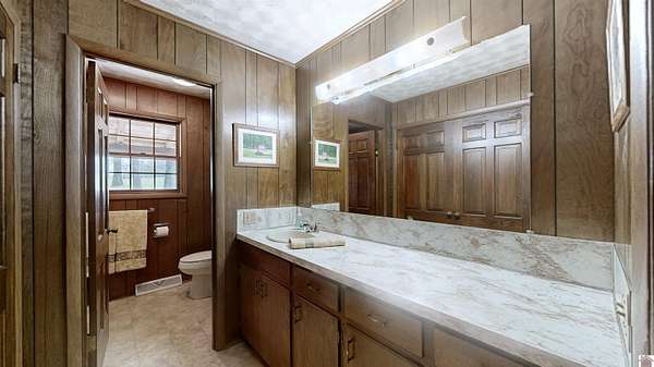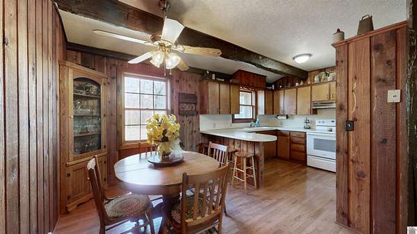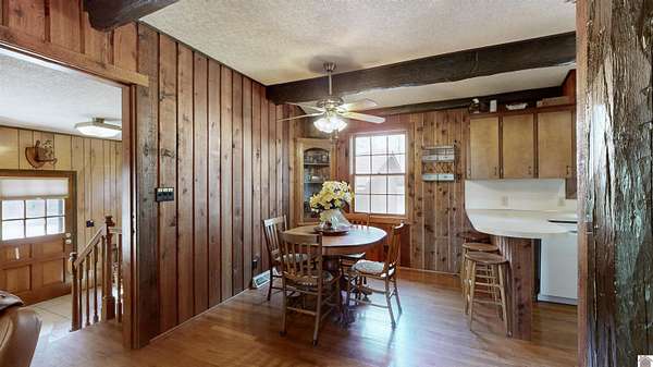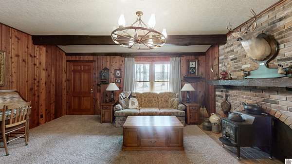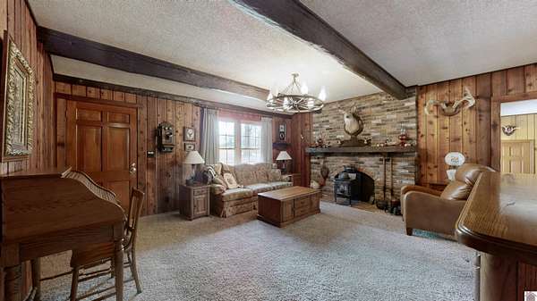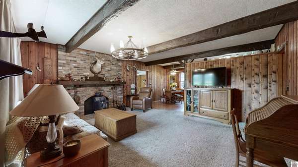 Peace and tranquility await in this beautifully maintained home, nestled on 6.8 acres, just waiting for you! This 3 bed 2.5 bath home beams with charm throughout. As you enter you'll love the rustic beams in the ceiling and fireplace in the living area. Great bonus space off of the living room which could be used as an office or whatever would fit your needs. Plenty of cabinet & counter space in kitchen. Large primary suite with spacious bathroom & walk-in closet. Roomy 2nd & 3rd bedrooms with one having its own half bath. Step outside on your covered front porch or roam the property to enjoy all that nature has to offer. There is a pond located on the back left of property. Bonus detached building that has great potential to provide extra storage or a great party shack. Barn out back has potential to be restored and used for all sorts of purposes. Paved driveway. 2 Car carport. Located close to Walmart and I-69 for convenient shopping and travel. Don't miss this great opportunity!