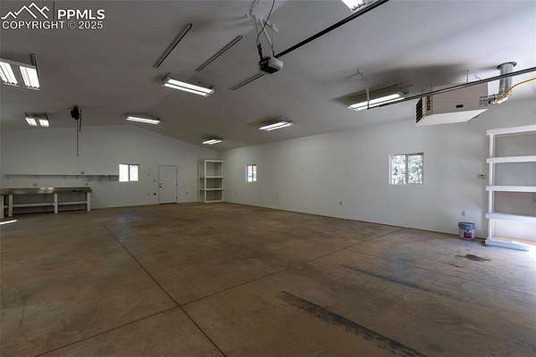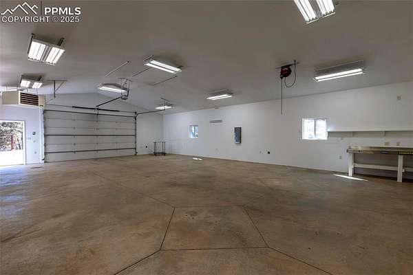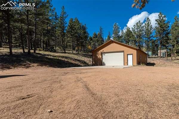 This is your chance to own one of the best-built workshop garages in Teller County privately located on 2.86 treed acres. The 1536 sq. ft. shop was custom-built in 2014. It features well insulated walls, drywalled and painted interior, insulated foundation (2" Styrofoam), and a commercial grade Reznor thermostatically controlled natural gas heat. The building is an electrician's dream with 200 Amp feed- through service ready to supply another structure and ready to run your demanding electrical systems. Abundant overhead lighting. Workbenches. Electrical receptacles galore. Three 50 Amp outlets. Two entry doors. Overhead door with opener. Large concrete apron. Exterior lighting and outlets. 50 Amp RV pedestal. The horseshoe driveway can handle oversized vehicles with ease. This could be basecamp to build your new home, store and work on your prize vehicles, or handle anything you can dream of. Horses are welcome in Druid Hills! Adjoining parcels (and house) are also for sale.