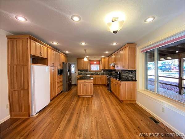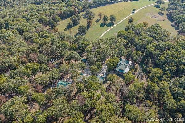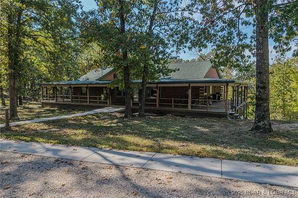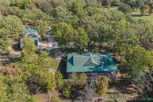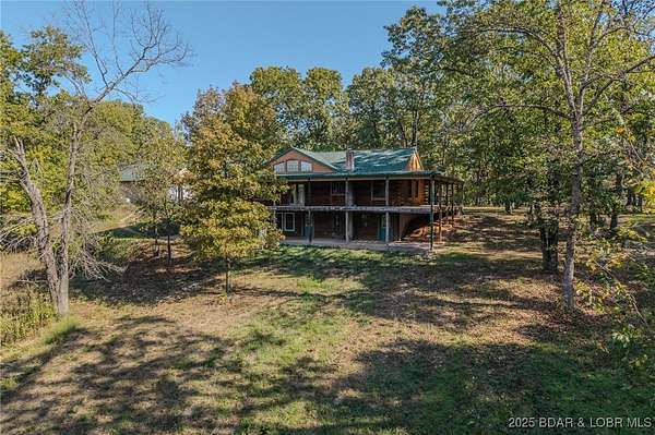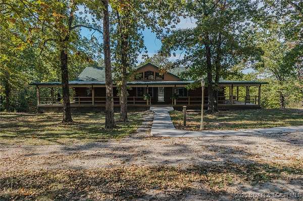 49 Acres of heaven on Earth! Located just outside Ha-Ha Tonka State Park in Camdenton this amazing property is split fairly evenly between pasture and wooded land. Lovely approach from the road giving a park-like entrance. Use the pasture for horses, hay or just a beautiful landscape to enjoy. Mature, wooded acreage surrounds this fantastic log home with lovely views in every direction, perfect for hunting! The wrap around porch will beckon you to sit and enjoy nature at its finest including the wildlife that enjoy two wet weather ponds. Vaulted ceilings and 14" pine flooring greet you as you walk through the front door. The kitchen is fit for the chef & baker in you! This kitchen boasts a propane stove with double oven, stainless steel appliances, granite counter-tops, custom cabinetry with pull out pantry drawers and a reverse osmosis system. Unfinished basement with amazing storage, a work shop and wood stove with titanium sleeve. New roof and gutters, HVAC 2024, Property is complete with separate 4 car garage, 300 sqft barn, additional 30x40 outbuilding and 264 sqft shed. Don't forget the chicken coop! Hobby farm or residential dream with privacy, this home is for you!