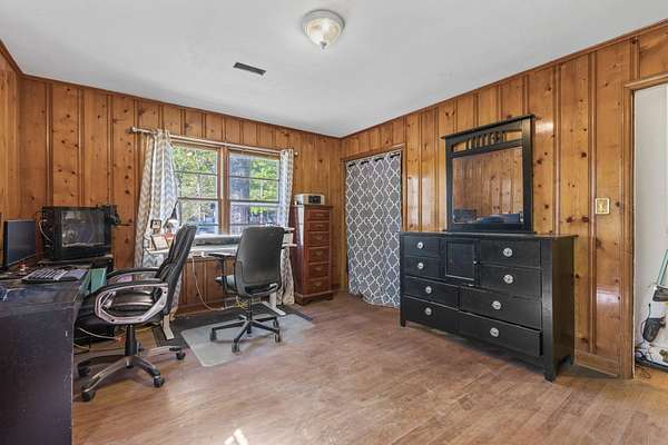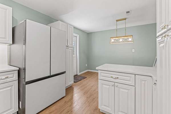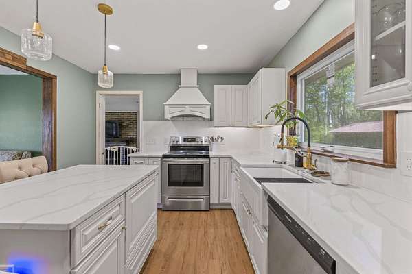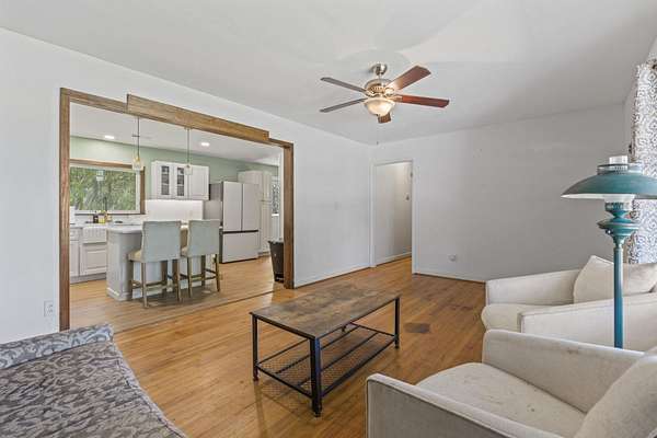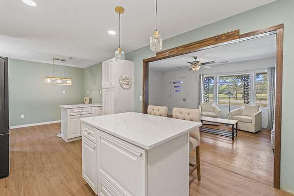 Discover the perfect blend of space and comfort with this charming country home set on over 1.5 acres along a quiet, paved road with no HOA and no restrictions. Inside, you will find a beautifully remodeled kitchen designed to impress, featuring quartz countertops, white cabinetry, a porcelain farmhouse sink, stainless steel appliances, a stylish vent hood, and a spacious island with bar seating, which is perfect for entertaining or everyday living. Natural wood flooring flows throughout the living room and bedrooms, adding warmth and character. A large family room provides additional living space, complete with ceramic tile flooring and a cozy wood-burning fireplace. Outside, this mostly brick home offers an attached carport plus an additional large, covered carport in the backyard making it ideal for extra vehicles, boats, or equipment. A workshop/shed off the primary carport adds valuable storage or workspace. Enjoy the fully fenced, expansive backyard, and take comfort in knowing the roof has been recently replaced along with new gutters. If you are looking for privacy and room to spread out without restrictions, this property checks all the boxes.