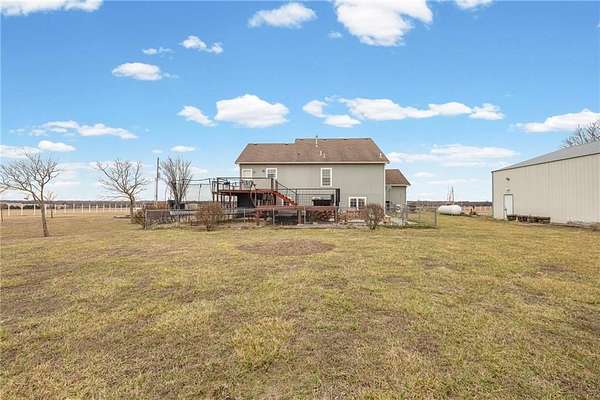 Step right into this well-built country home that's ready for you to move in! Located with quick and convenient access to Kansas Highway 10 (K-10), this spacious 5-bedroom, 3-bath home offers an open layout with modern finishes, high ceilings, a cozy fireplace in the living room, and plenty of natural light throughout. The layout gives you great separation between living areas and bedrooms, plus every bedroom has its own walk-in closet. Outside, you can unwind on the wraparound deck or cool off in the saltwater pool. There's also a fenced area off the back of the house that's perfect for pets. Along with the 3-car garage, the property features an impressive 47' x 52' shop with 14-foot walls, 6-inch concrete floors, and its own separate electric perfect for projects, storage