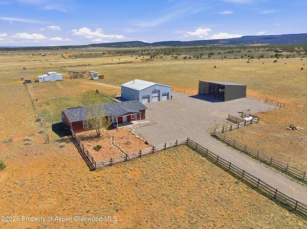 Great property available in Glade Park with approximately 45 acres of land. Fantastic oversized heated and insulated shop with an office space or man cave. This shop is a rare find at this price point. 3 bedroom 2 bathroom house offering an open layout, covered porch and fenced yard. Property is fenced with corrals and a pole barn. Property is ready for livestock and has been outstanding for horse and pasture. Good well approved to water up to an acre of land for a nice yard and landscaping. Excellent hunting unit. Closely located to the Glade Park store. Privacy of rural living with conveniences nearby.