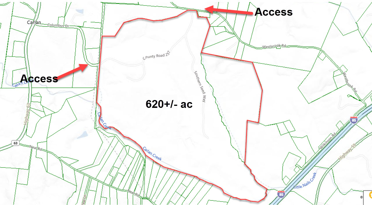 Est $69,334/mo620 Acres of North Georgia pasture with visibility from I-85. Adequate water for livestock, nice 10 acre lake, 2 layer houses used for storage and has a large walk-in cooler (previously for eggs). 2 miles from interstate exit - 60 miles to downtown Atlanta. Could continue as a beautiful cattle farm or be broken up into thirty 20 acre gentleman farms - a solid, hot market.