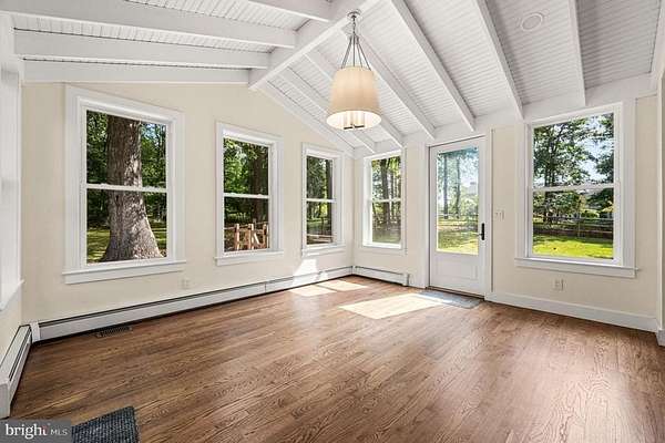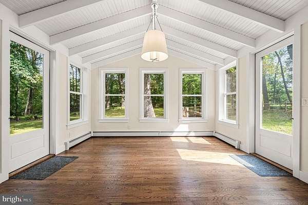 Rare opportunity for privacy, space, and style in Charlestown Township / Great Valley SD. Recently renovated 4BR/2.5BA home on 2+ private wooded acres with approx 3,040 SF and a 2-CAR garage. Interior updates include refinished HARDWOODS on both levels, designer-neutral paint, updated lighting, and newly insulated windows/doors/siding for energy efficiency. Smart-home dual-zone thermostats enhance comfort. A custom mahogany entry door with BALDWIN hardware opens to a slate-floor foyer, a 21-ft living room with abundant natural light, and a welcoming family room with exposed beams, built-ins, and a whitewashed WOOD-BURNING FIREPLACE, a standout for chilly nights. The renovated kitchen offers custom solid CHERRY cabinetry, GRANITE countertops, a center island, and new STAINLESS appliances including SUB-ZERO refrigerator and BOSCH cooktop/dishwasher. Adjacent four-season sunroom (14' x 13.5') with vaulted ceiling, full HVAC, and three walls of windows overlooks the serene backyard. Formal dining with wainscoting. Main level laundry, powder room, MUDROOM, and interior access to garage. Generator-ready: dedicated inlet in the garage. Upstairs features 4 large, generous sized bedrooms, including a primary with walk-in closet and elegant updated MARBLE ensuite. Unfinished basement provides excellent storage/workout/workshop options. Quick commute to Vanguard, Saint-Gobain, Vishay and other corporate centers. Convenient access to PA Turnpike (I-76), Route 202, Route 30, and SEPTA Malvern Regional Rail. Outdoor living features two brick patios and a split-rail fenced area. Lease this Luxury Malvern Rentala polished retreat with modern systems.
