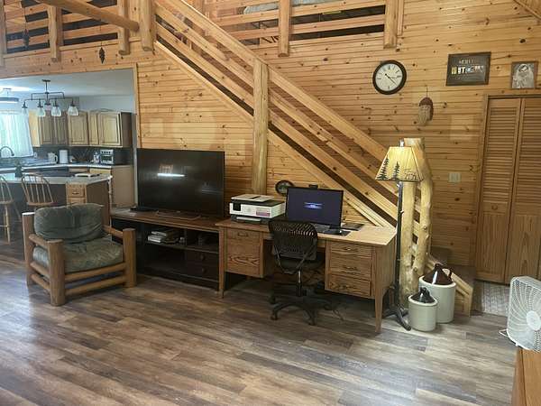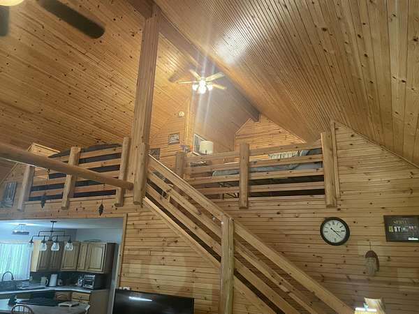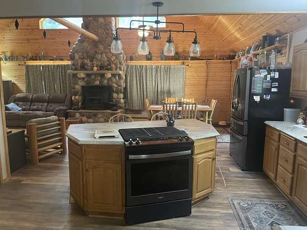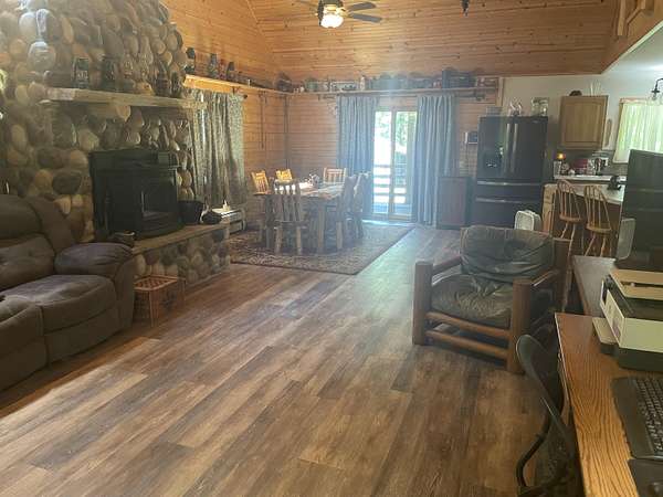 Custom built log home with over 34 acres of serene, wooded land, offering unparalleled peace, privacy, and natural beauty. Perfect for outdoor enthusiasts, or anyone seeking a tranquil lifestyle, this custom-built home features 2 bedrooms, 2 bathrooms, a spacious open-concept living area with soaring ceilings, and a cozy stone fireplace and full unfinished walkout basement. Enjoy views from decks located on each side of the home, explore the acreage with 2 blinds strategically located on the property. Whether you are looking for a full-time residence, a vacation getaway, or an investment property, this unique home combines rustic elegance with modern comfort. It is just a short drive from Cadillac. Properties like this are rare - schedule your private tour today!