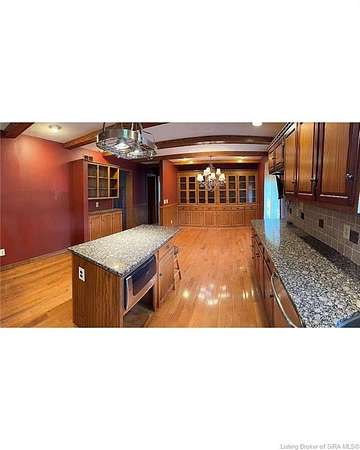 The large kitchen is designed for both cooking and gathering, complete with an island, abundant built-in storage, and included appliances (dishwasher, stove, and refrigerator). Two HVAC units ensure year-round comfort throughout the home.
