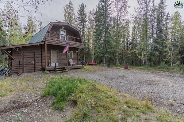 Location, Privacy, and Rustic Charm. Tucked away on a private drive, this charming two-story home sits on a serene, wooded 1.7-acre lot--offering both privacy and a true Alaskan feel. As you approach, the inviting covered front porch sets the tone for relaxation and quiet living. Step inside to a warm, cozy space with a solid layout and endless potential for customization. The main floor features a compact kitchen with a propane stove, a comfortable living area, and smart use of space throughout. Upstairs, a spacious full loft provides flexibility for an oversized bedroom, home office, or additional storage--maximizing every square foot. Whether you're envisioning a peaceful full-time retreat, a guest cabin, or a weekend getaway, this home offers the perfect foundation. Outside, enjoy a generous yard with an attached cold storage shed and an additional 8' x 10' shed for even more storage options. Recent upgrades add even more value: a brand-new well was installed in 2022, and the septic system was replaced in 2023. With natural surroundings and room to make it your own, this property is ready for its next chapter.