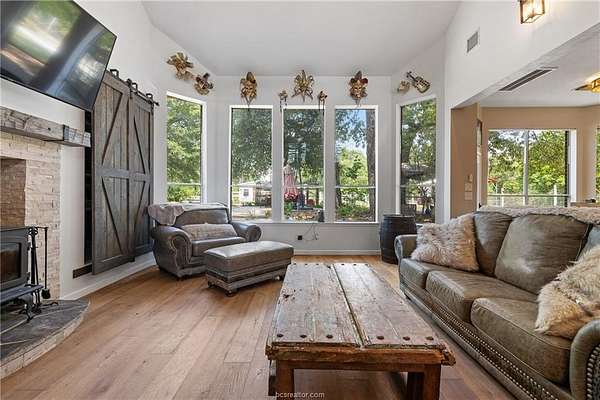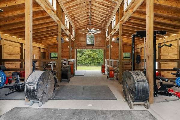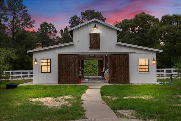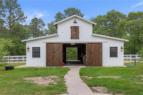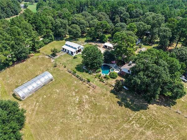 This 21-acre, ag-exempt property combines modern living with established rural infrastructure and convenient access to Montgomery, College Station, and regional business centers. The land offers a balanced mix of open pasture and natural woods, quality soil for horses or livestock, and perimeter and cross-fencing, with over 10 acres left untouched for future use. A 1,512 SqFt monitor-style barn provides flexible space for stalls, feed, or equipment, supported by a 720 SqFt workshop, two greenhouses, and additional outbuildings. The remodeled 2,669 SqFt main home features vaulted ceilings, expansive windows, and an open-concept layout centered around a chef's kitchen with custom cabinetry, a commercial-grade range, and a Monkeypod wood island. Outdoor living includes a private pool and space to enjoy the countryside. A separate 693 SqFt guest house with full kitchen and bath offers options for guests, extended family, or a home office. Whether you're seeking an equestrian property, a working homestead, or a refined country retreat with infrastructure already in place, this property offers space, usability, and proximity to town without compromise. Low Grimes County taxes, a private well, septic system, and a wood-burning stove provide comfort and long-term savings. Livestock and animals do not convey and will be removed prior to closing, allowing buyers flexibility to tailor the property to their own vision.