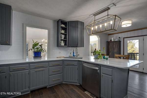Are you looking for a lakefront home that is priced to allow you to make it just perfect for you? WELCOME HOME! This spacious home features plenty of space for everyone. The main house offers 3450 sq. ft, 3 bedrooms with 2 other rooms that have potential to be offices or bedrooms, 3 bathrooms. Above the detached 3 car garage, you'll have an additional 501 sq. ft apartment/studio room with a kitchenette and a full bath. Use this area to create the perfect space for guests, craft room, or even with a little configuration, turn it into a rental apartment. This welcoming home sits on almost 3 ACRES with a level yard to the water, which is hard to find in East Tennessee. The quiet cove provides the desired depth for swimming and boats during the summer pool water levels being approximately 4.5 ft deep. With 366 feet of waterfrontage, you have plenty of room if you want to change the dock location and build a bigger one. Each room has tons of windows providing an abundance of natural lighting. The beautifully updated kitchen features quartz countertops, stainless steel appliances, and solid wood cabinetry. The spacious dining area has numerous possibilities. Have a large family...you'll have no problem with a massive dining table that everyone can sit around. Or, divide the space and have a dining room and a sunroom/sitting area to relax at the end of a long day. The main level has a bedroom that could easily be turned into a master with an ensuite bathroom. This room opens onto the back deck. During the cooler months, enjoy relaxing in front of your woodburning fireplace. But, during the warmer months, you'll certainly want to enjoy the lake and then relax on the welcoming back deck, providing plenty of space for those outdoor cookouts at the end of the summer lake days. With easy access to I75 this makes the location ideal for being minutes away from the TN National Golf course and a short drive to Lenoir City and the Turkey Creek area with LOTS of shops and restaurants. Come see for yourself all this lakefront home has to offer. Don't forget to ask your Realtor to give you a list of all the recent updates on the Good Things To Know document.