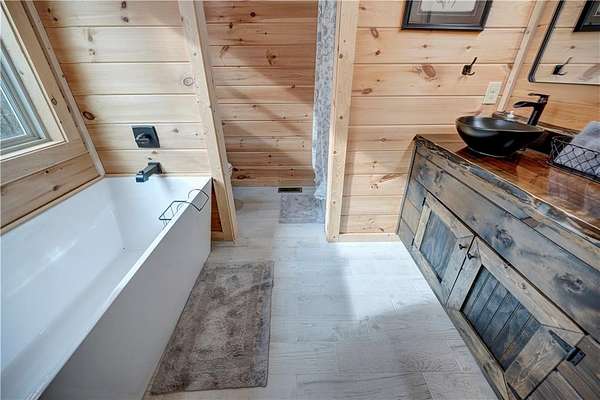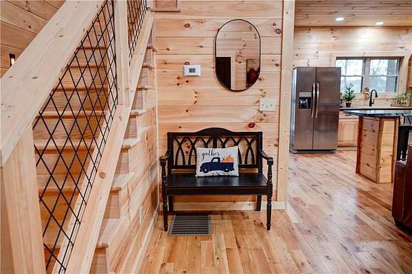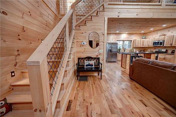 BRAND-NEW RIVER-FRONT RETREAT NESTLED IN THE FOOTHILLS OF THE NORTH GA MOUNTAINS with UNFINISHED BASEMENT! This sizable and spectacular home will beckon you with MAJESTIC VIEWS and 150+/- FEET of frontage along the shores of the COOSAWATTEE RIVER. Situated upon a 1.5+/- ACRE tract in the Ranger community, this CUSTOM CABIN is truly what dreams are made of. The exterior boasts handsome, yet durable CEMENT SIDING, with board-and-batten and shake patterns adorning the facade, and gorgeous STONEWORK along the rear elevation. From the inviting ROCKING CHAIR FRONT PORCH, guests are welcomed into the fabulously-flowing footprint and greeted with PINE TONGUE-AND-GROOVE WALLS AND CEILINGS, and RED OAK HARDWOOD FLOORING throughout. The MAIN LIVING LEVEL provides an OPEN-CONCEPT layout, perfect for both ENTERTAINING and EVERYDAY LIVING. The LIVING ROOM is towered by SOARING CEILINGS and offers an AUTHENTIC, WOOD-BURNING FIREPLACE as its focal point. The KITCHEN is adorned with RAISED-PANEL CABINETRY; GRANITE, SINGLE-BOWL SINK; STAINLESS APPLIANCE PACKAGE (including refrigerator); and BUTCHER BLOCK counters. Handmade BREAKFAST BAR/PREP ISLAND spills into the living room in an effortless flow, and brilliant NATURAL LIGHTING sunkisses the spaces. The kitchen area also opens to the SCREENED BACK PORCH (designed to hold Plexiglass panels, in case a future Florida Room is desired) , which is flanked by uncovered DECKING, which SPANS THE WIDTH OF THE HOME, both of which OVERLOOK THE ROARING RIVER BANKS. A covered space is also included for convenient grilling. The MAIN-LEVEL OWNER'S RETREAT provides luxurious accommodations to snuggle in while enjoying the sounds of natural lullabies organically provided by the sound of rainfall dancing upon the home's METAL ROOF. Its sizable bedroom opens to a PRIVATE ENSUITE with GEOMETRICAL SOAKING TUB; Separate TILE SHOWER with pebble-mosaic flooring and recessed product nook; and Artisanal pine vanity with DOUBLE GLASS BOWLS. The WALK-IN WARDROBE also houses the LAUNDRY FACILITIES for convenience. Completing the main level is handily-placed HALF BATH. Travel up the TIMBER TREAD STAIRCASE to the UPPER LEVEL, featuring a BEDROOM, FULL BATH, and generous LOFT, which overlooks the living room and is equipped with window views of the river (could be utilized as an open 3rd bedroom). The UNFINISHED BASEMENT provides an amazing opportunity for expansion, if desired, and is PLUMBED FOR a FUTURE BATH. It opens to a COVERED STONE PATIO, which steps on the tranquility of the back yard space, complete with designated FIRE PIT area, and OVERLOOKS THE COOSAWATTEE RIVER. This magnificent property is located less than half a mile to the acclaimed 2400 on the River Event Venue, and is convenient to town, dining, shopping, and attractions. Additional highlights include SPRAY FOAM INSULATION and GUTTERS with GUTTER GUARDS. Embrace river living at its finest - Perfect for year-round enjoyment or a serene seasonal retreat. Welcome Home to 2092 Pleasant Hill Road!