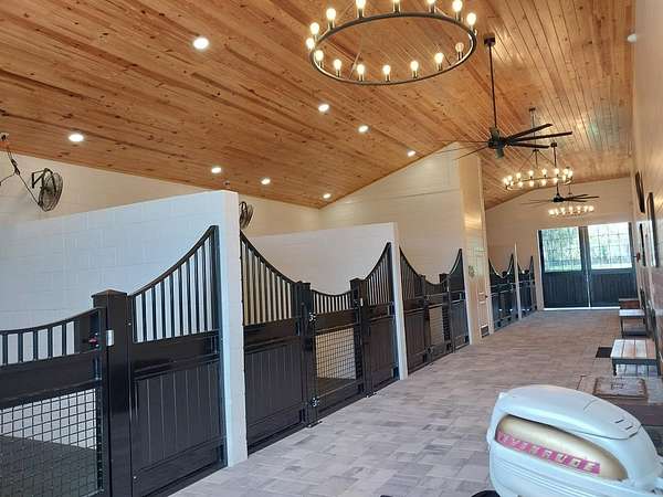 Equestrian enthusiasts and farm lovers, just 25 minutes from the World Equestrian Center you can enjoy the newly built luxury barn at Paradise Farm. Come enjoy the daily sunrises and sunsets alongside some time to fish in the lake down the hill within the 44 acres the farm has. The charming barn with vaulted ceilings was built in 2025 and offers an airconditioned reception area, a generous apartment that sleeps 6 people with a full service bathroom and kitchen, a spacious closet, wifi, water, 5 spacious stalls with their own fans, 5 individual and adjustable four board paddocks, airconditioned feed and tack room, Nelson stall fountains, airconditioned half bath in the barn hallway, 24 hour security cameras, and of course - fully furnished. Access to use the helipad may be granted at an additional cost. Prospective tenants are responsible to bring their own shavings as well as removing all shavings at the end of the lease. The barn is on a separate electric meter so tenant will be responsible for electric. The landlords are considering annual rentals, seasonal rentals, and flexibility to only rent the stalls and paddocks - together or separate. Annual asking rate is $5,900/mo - call us for SEASONAL rate! Please call to get rates for the stalls and paddocks individually should you consider that option as well. Take advantage before it's too late!