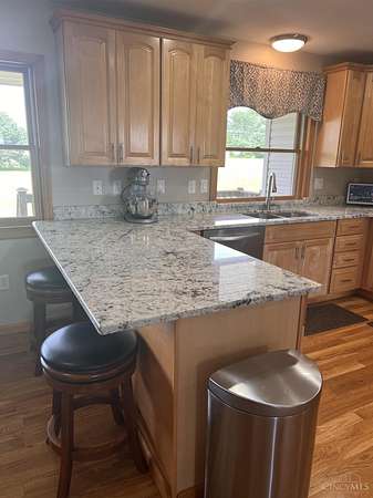 Are you looking for over 5 acres in Talawanda School District? Here it is! This home is one that you have to see in person to appreciate its uniqueness. There's a 5 car oversized garage with an attached office. The basement is 2,277 sq ft., 10.5' TALL and partially finished with an additional 2 bedrooms and full bathroom. The main floor is 2,277 sq ft with 4 bedrooms and 2.5 bathrooms. The views from this property are amazing, with the best being around July 4th when you can see ALL the neighboring municipality and neighbor's fireworks. New granite in the kitchen, master bathroom is completely tiled with marble tiles, carpet only in the 3 extra bedrooms, red oak hardwood floors stained to look like hickory in all the main areas, tile in the full guest bath, 3 ovens, two 8' sliders in the living room looking out to neighboring ponds and a creek in the back with woods on the other side. All the Privacy you are trying to find! Marshall Elementary, Talawanda Middle and High School.