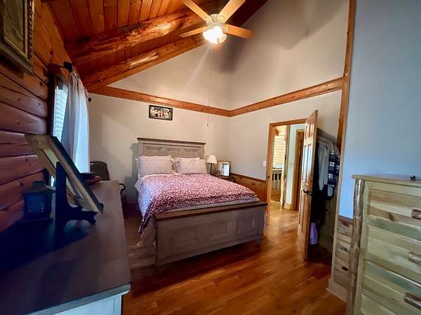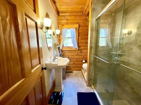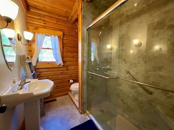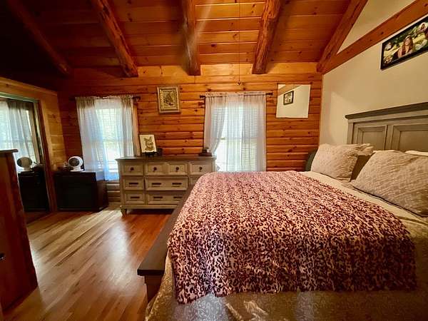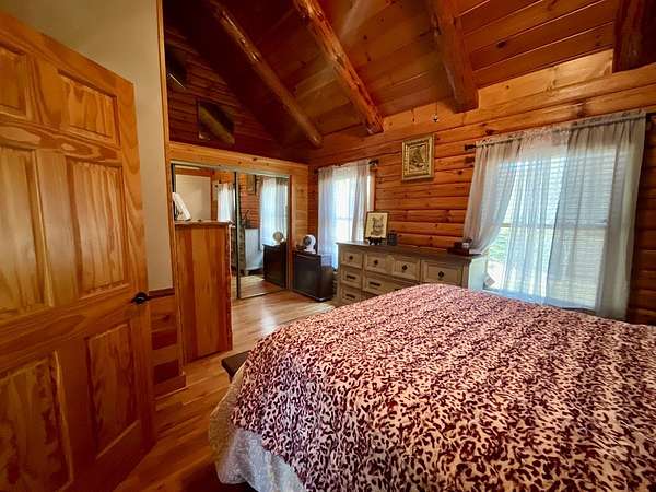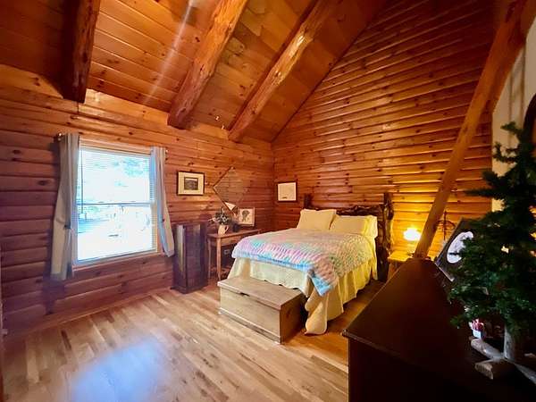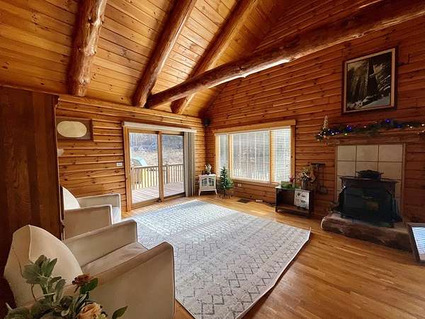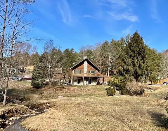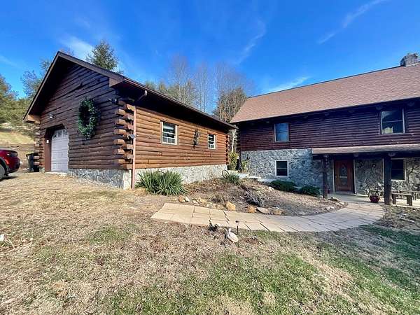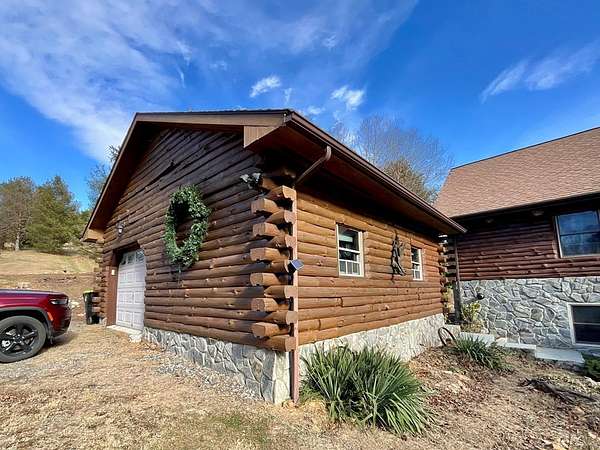 Escape to your own slice of paradise with this breathtaking log home nestled on 52.45 serene acres, complete with two bold streams meandering through the property. This 3-bedroom, 2-bath home boasts an open-concept layout featuring elegant hardwood and tile flooring, a updated kitchen with custom cabinetry, granite countertops, and stainless-steel appliances. Cozy up by the propane fireplace or enjoy the warmth of the beautiful Vermont Castings wood stove. The main level includes a welcoming living area, kitchen, a bedroom, laundry and a bath, while the upper level offers a spacious den with and two additional bedrooms with vaulted ceilings, and a full bath. Step outside to the expansive wrap-around porch - perfect for entertaining. The property also features a detached garage with a versatile studio space, ideal for guests or potential Airbnb income. A separate cabin across the creek provides the perfect retreat for kids or a peaceful getaway. Surrounded by lush rhododendron and mountain laurel, this home offers breathtaking views and abundant wildlife. Plus, you'll be within walking distance of the New River Trail, providing endless opportunities for hiking, biking, kayaking, trout fishing, and horseback riding in the stunning Blue Ridge Mountains. This is truly a once-in-a-lifetime opportunity to own a remarkable property with limitless possibilities! Call today to schedule your private tour!