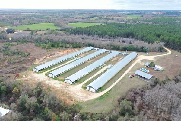 This modern breeder poultry farm is a turnkey agricultural opportunity located across West Geneva County and Covington County, Alabama, situated on approximately 30+- acres. Built in 2020, the farm is well-designed, efficiently operated, and contracted with Wayne-Sanderson Farms, offering strong performance and long-term production potential.