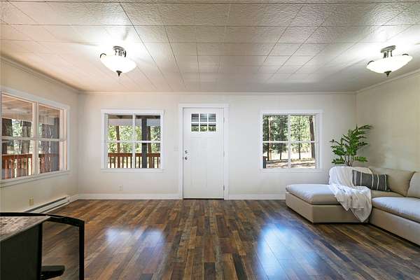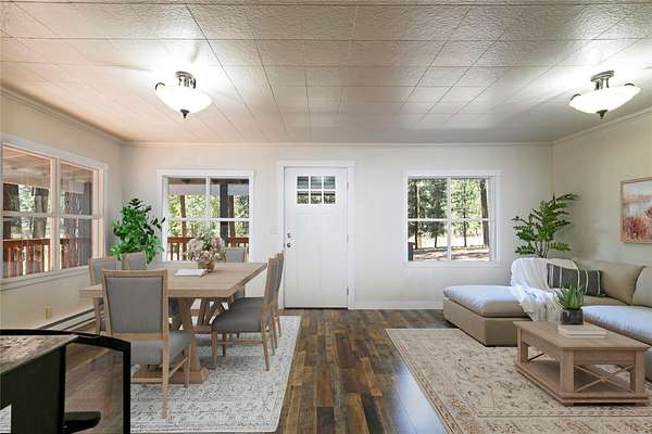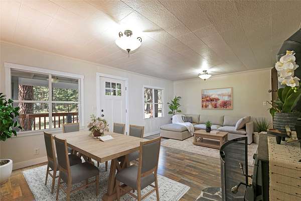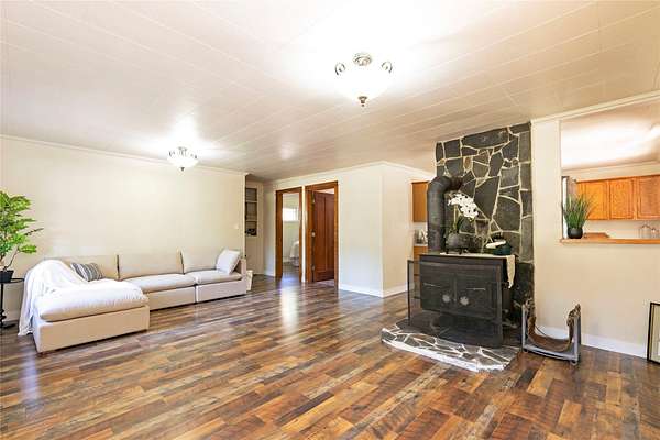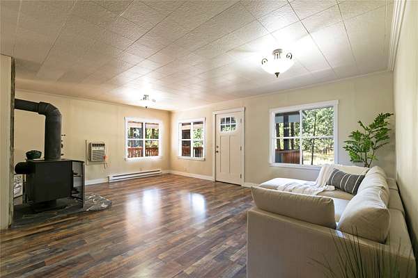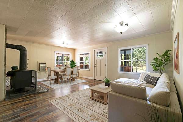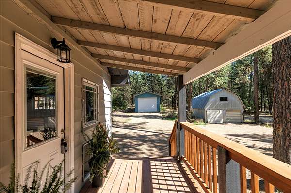 Welcome to this charming 2-bedroom, 1-bathroom home set on five treed acres. Recent renovations include fresh interior and exterior paint, new flooring throughout, new kitchen appliances, and a new metal roof. A spacious wraparound deck provides the perfect spot to relax and enjoy the peaceful surroundings. The property is well-equipped with a 26' x 24' detached shop and a 20' x 24' barn, along with a shed and additional storage areas-ideal for gardening and hobbies. A fire pit nestled among the trees creates a cozy gathering space for evenings under the stars. With its combination of updated features, functional outbuildings, and a serene, treed setting, this property offers both comfort and versatility in a beautiful setting.